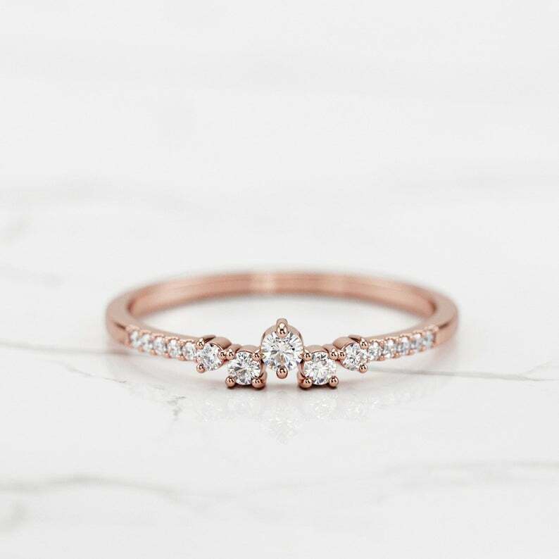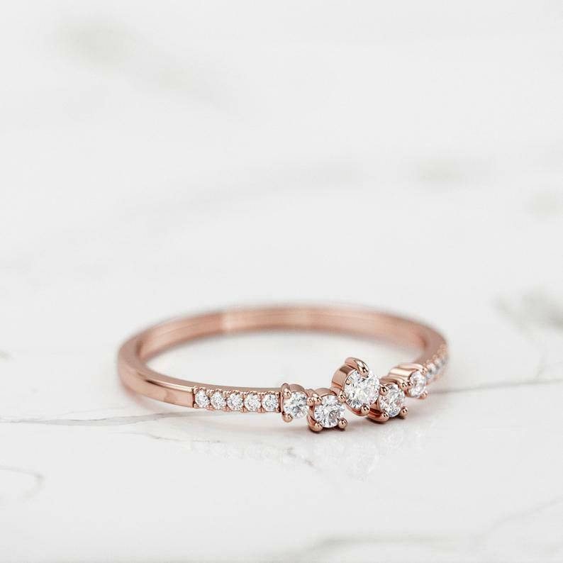 Five Stone Solitaire Engagement Ring 0.4ct Round Cut Diamond 14k Rose Gold Finish