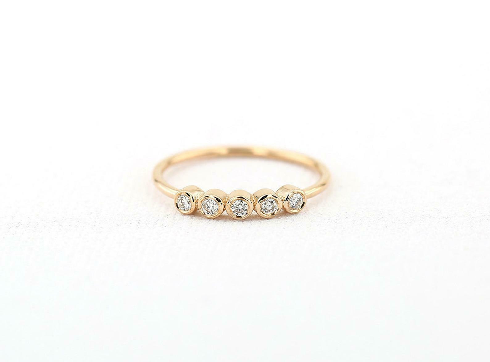 Five Stone Solitaire Engagement Ring 1ct Round Cut Diamond 14k Rose Gold Finish