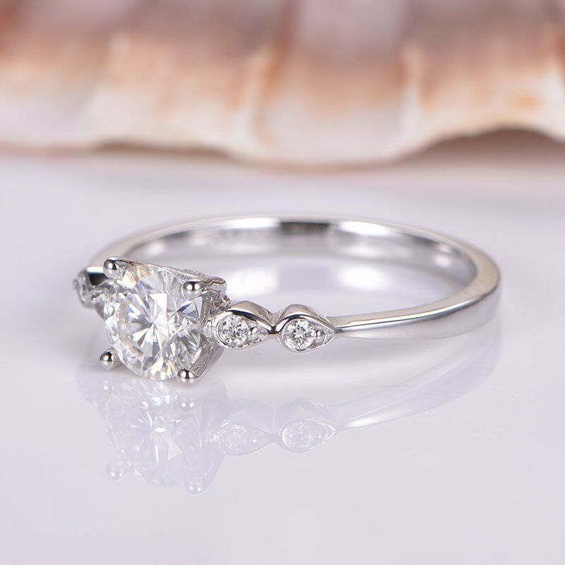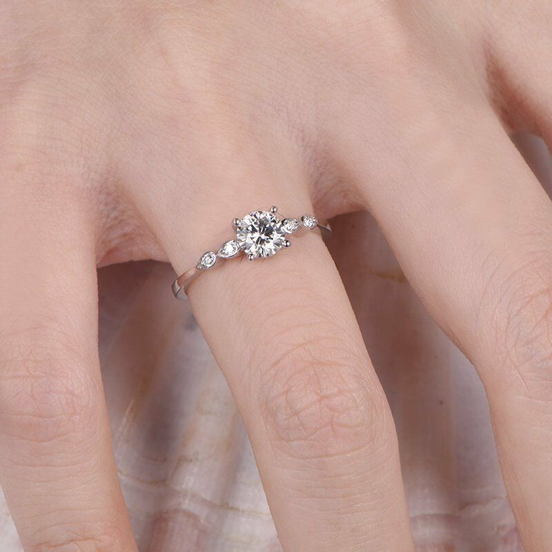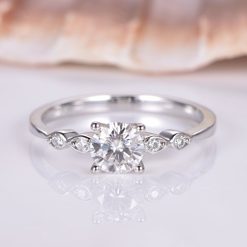 Five Stone Solitaire Engagement Ring 1ct Round Cut Diamond 14k White Gold Finish
