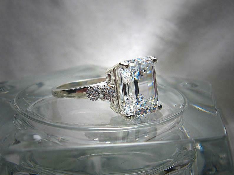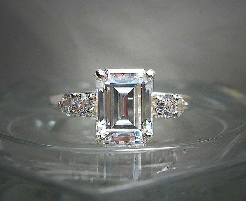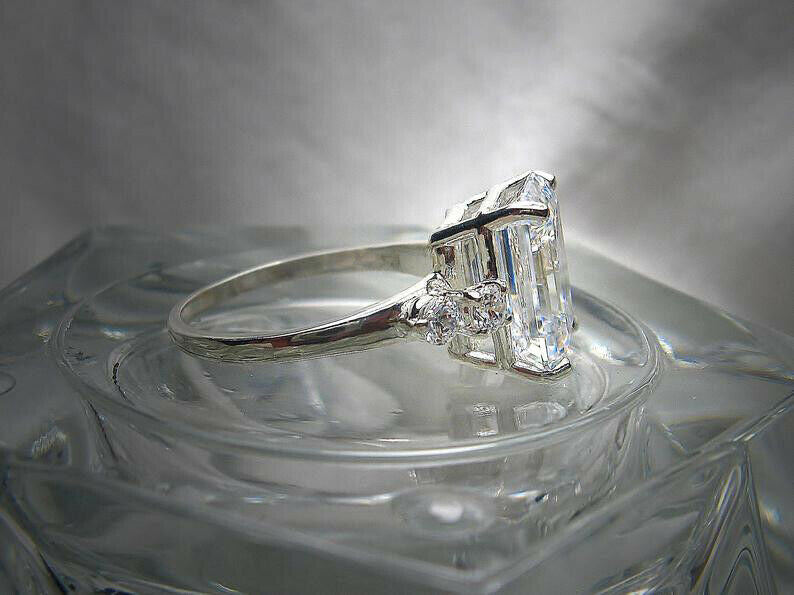 Five Stone Solitaire Engagement Ring 2.5ct Emerald Diamond 14k White Gold Finish
