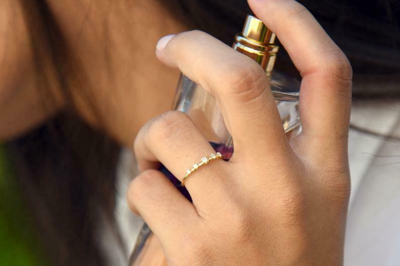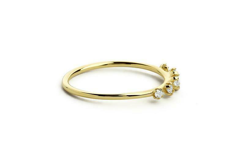 Five Stone Statement Wedding Band 0.8ct Round Cut Diamond 14k Yellow Gold Finish