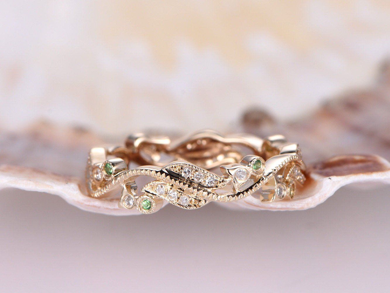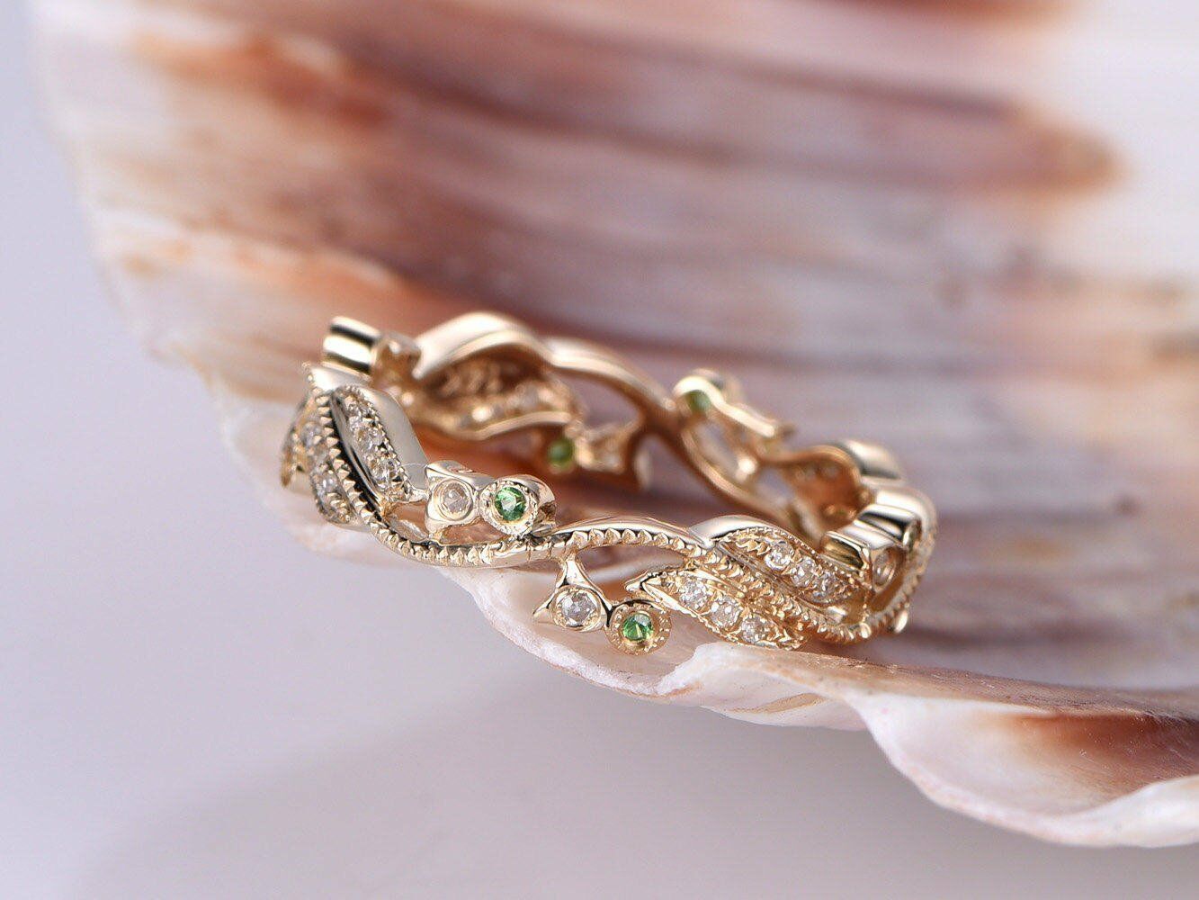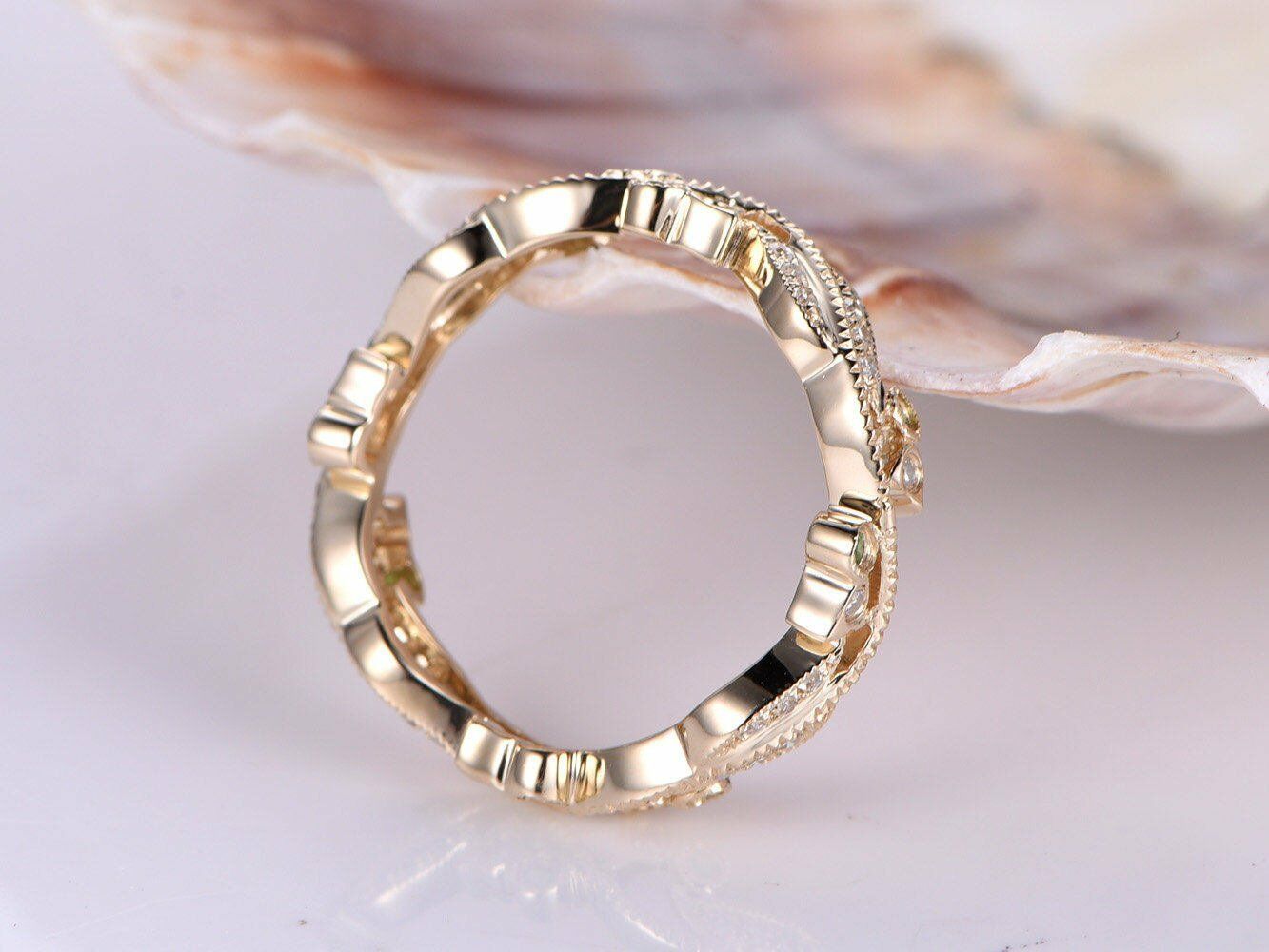 Floral Antique Eternity Wedding Ring Band 1ct Round Diamond 14k Yellow Gold Over
