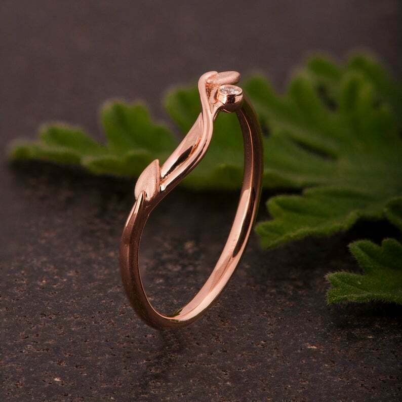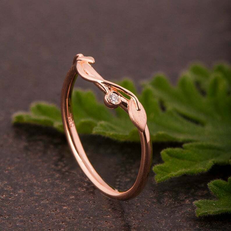 Floral Leaf Twig Engagement Ring 0.12ct Round Cut Diamond 14k Rose Gold Finish