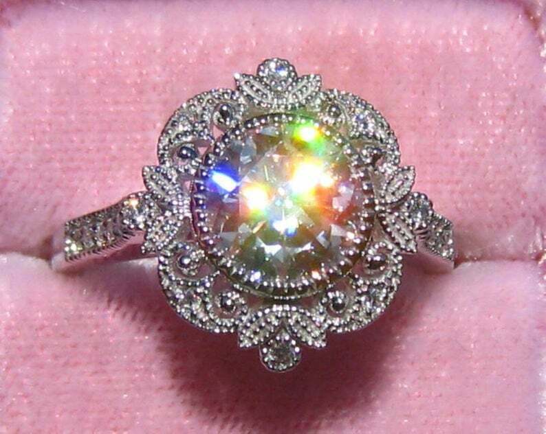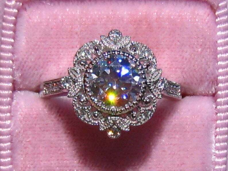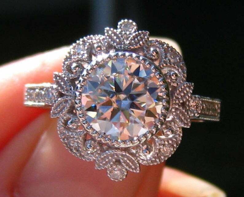 Floral Milgrain Engagement Ring 2.7ct Round Cut Diamond 14k White Gold Finish