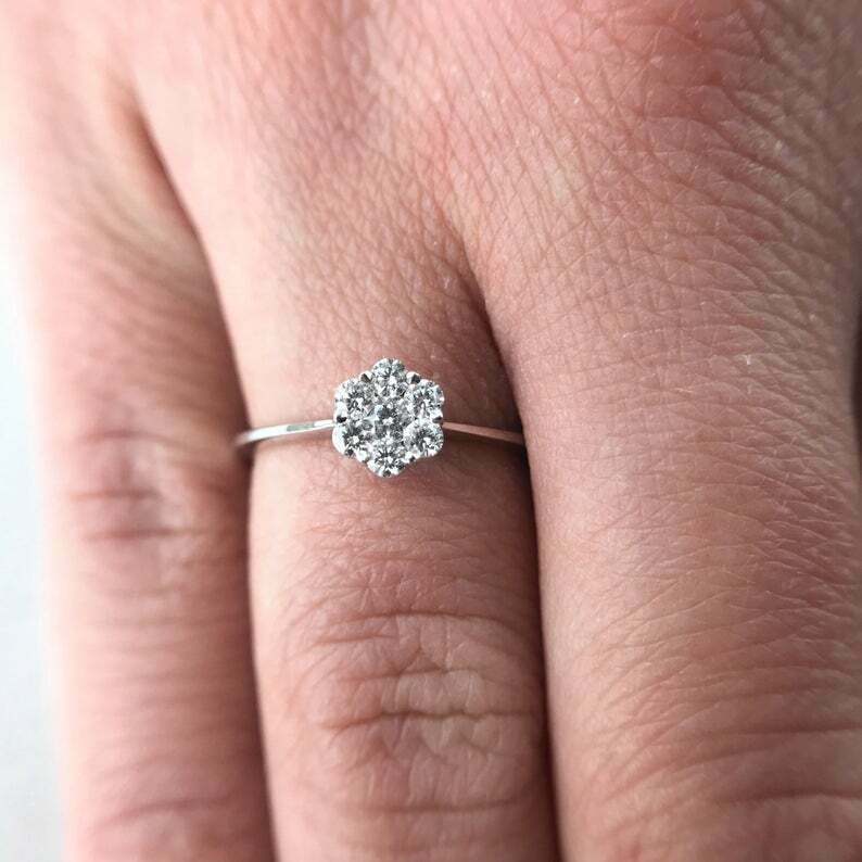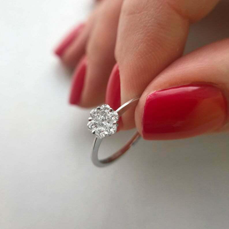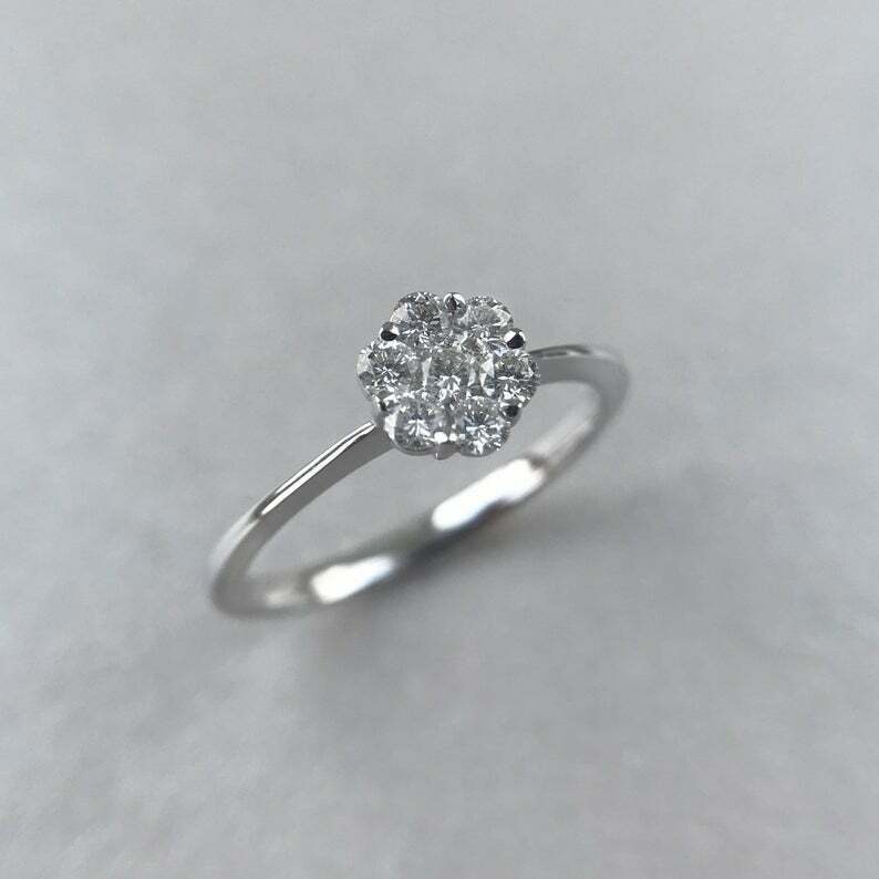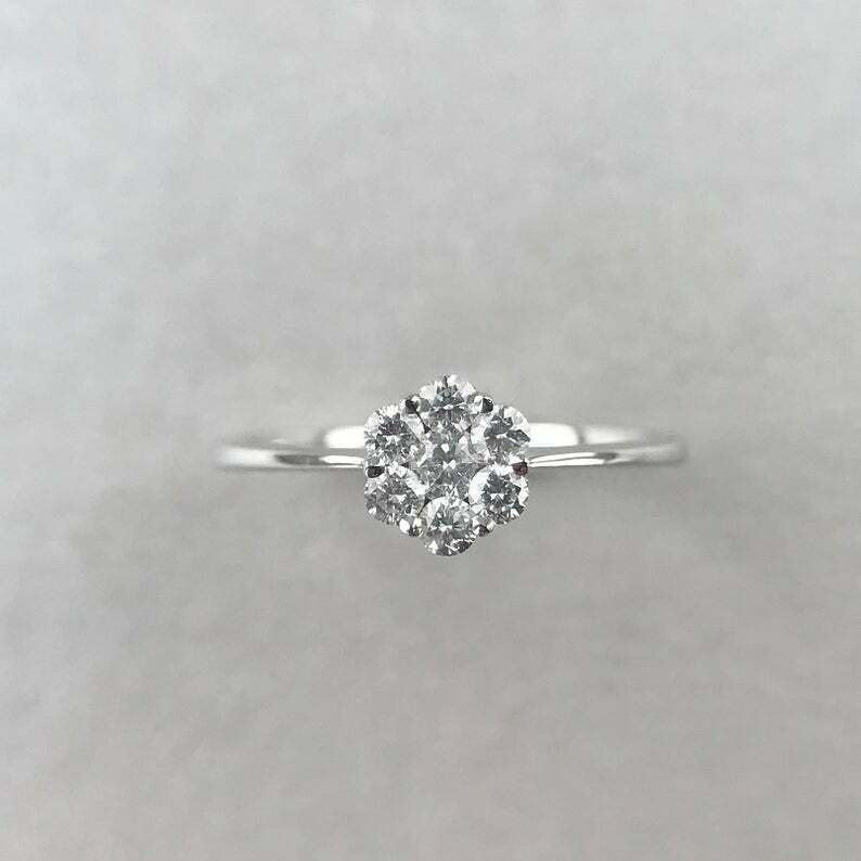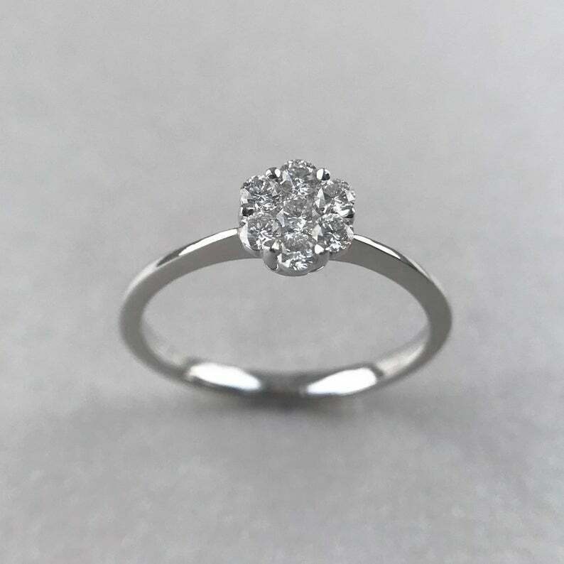 Floral Minimalist Engagement Ring 1.2ct Round Cut Diamond 14k White Gold Finish