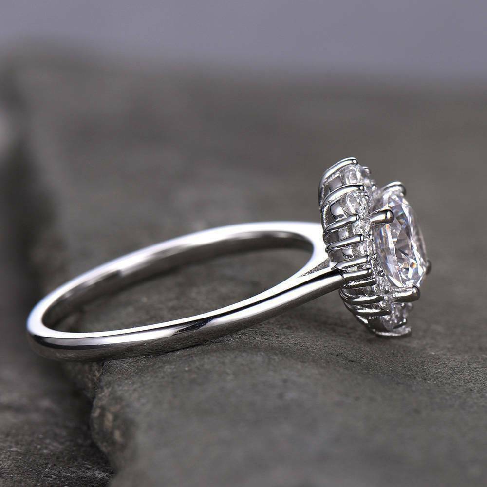 Flower Solitaire Engagement Ring 1.5ct Round Cut Diamond 14k White Gold Finish