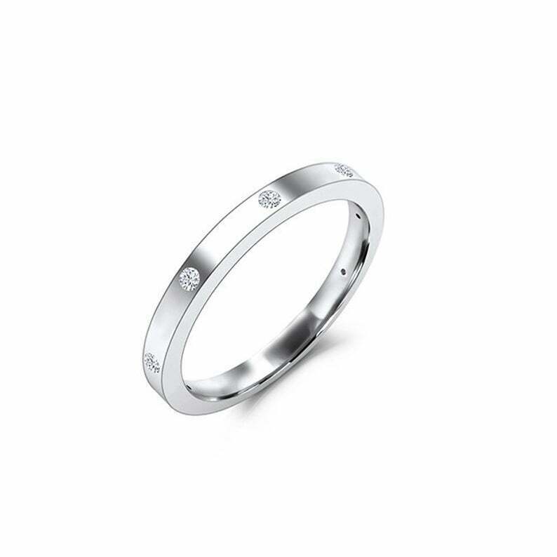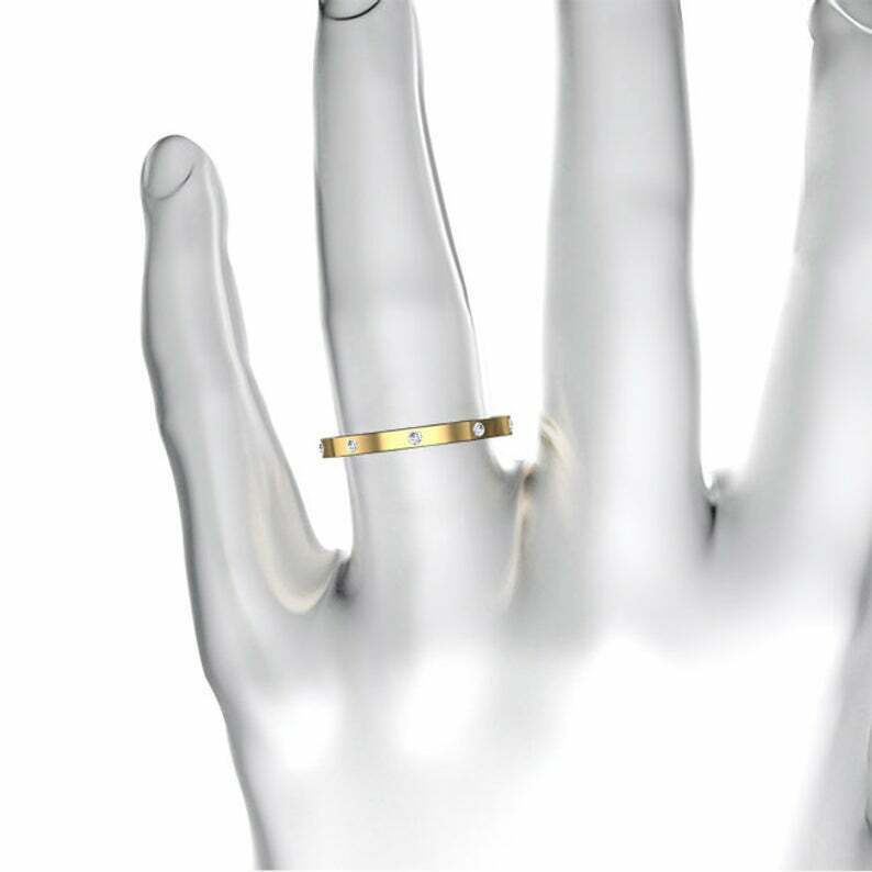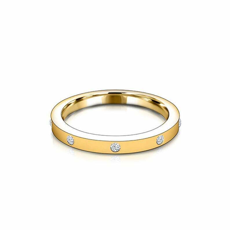 Flush Set Stackable Wedding Band 0.09ct Round Cut Diamond 14k Yellow Gold Finish