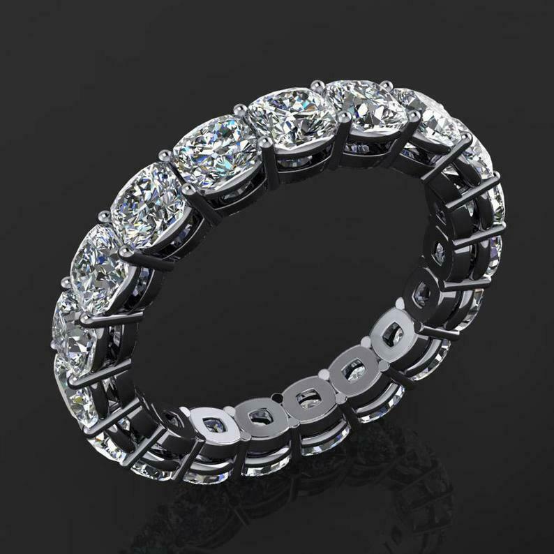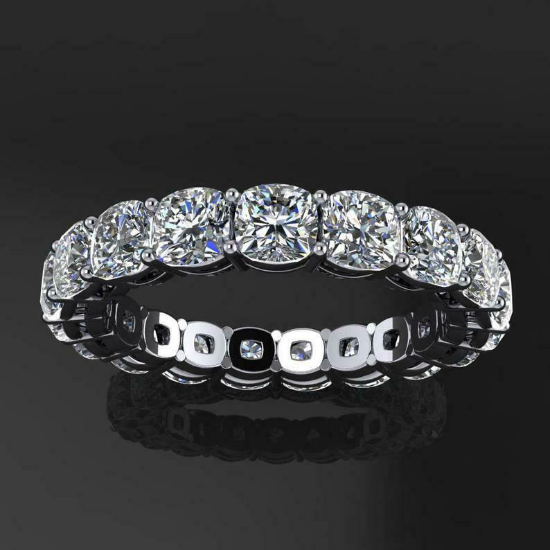 Full Eternity Anniversary Wedding Band 2.5ct Cushion Diamond 14k Yellow Gold Over