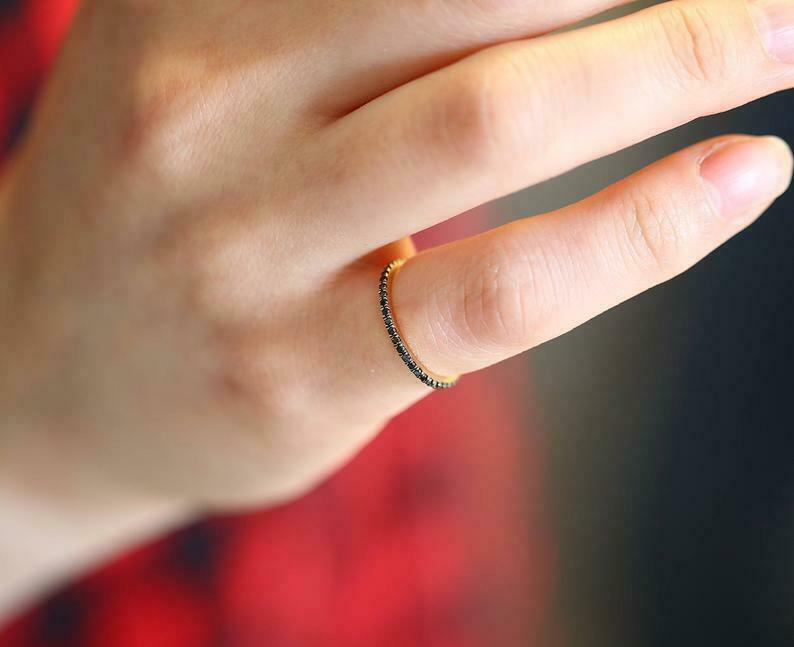 Full Eternity Wedding Ring Band 1ct Round Cut Black Diamond 14k Rose Gold Finish