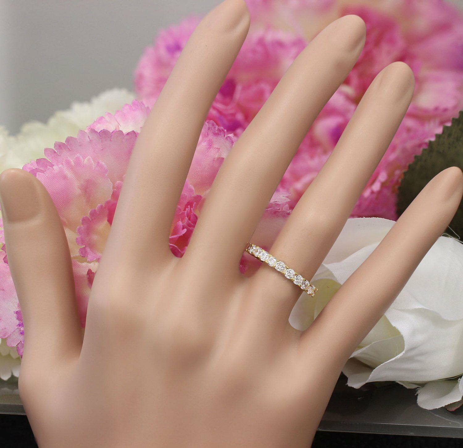 Full Eternity Wedding Ring Band 2ct Round Cut Diamond 14k Yellow Gold Finish