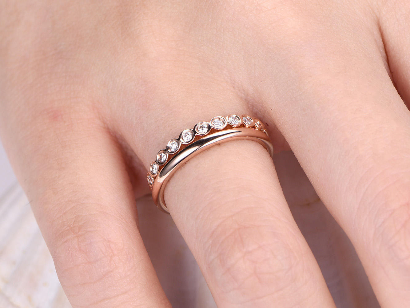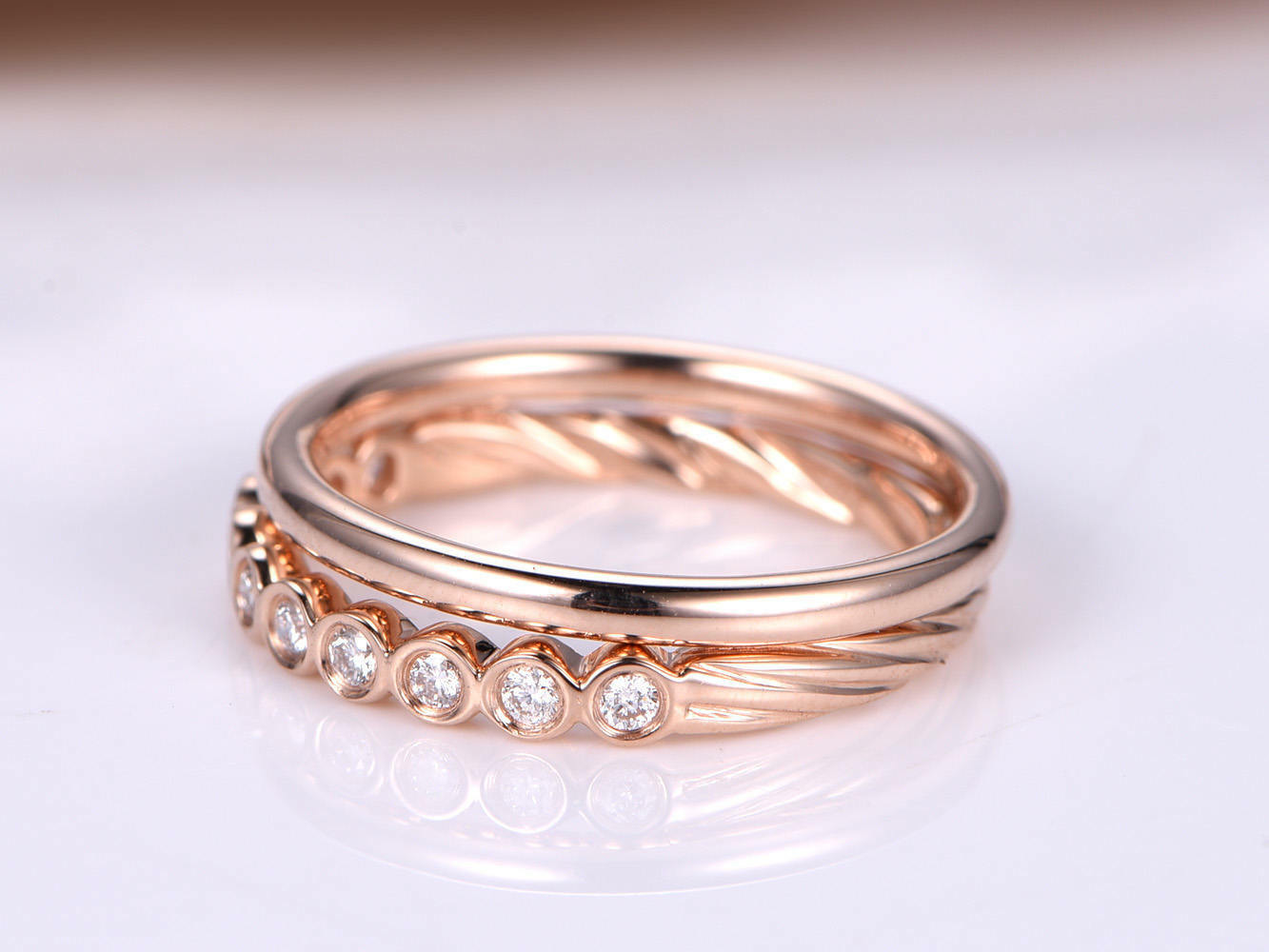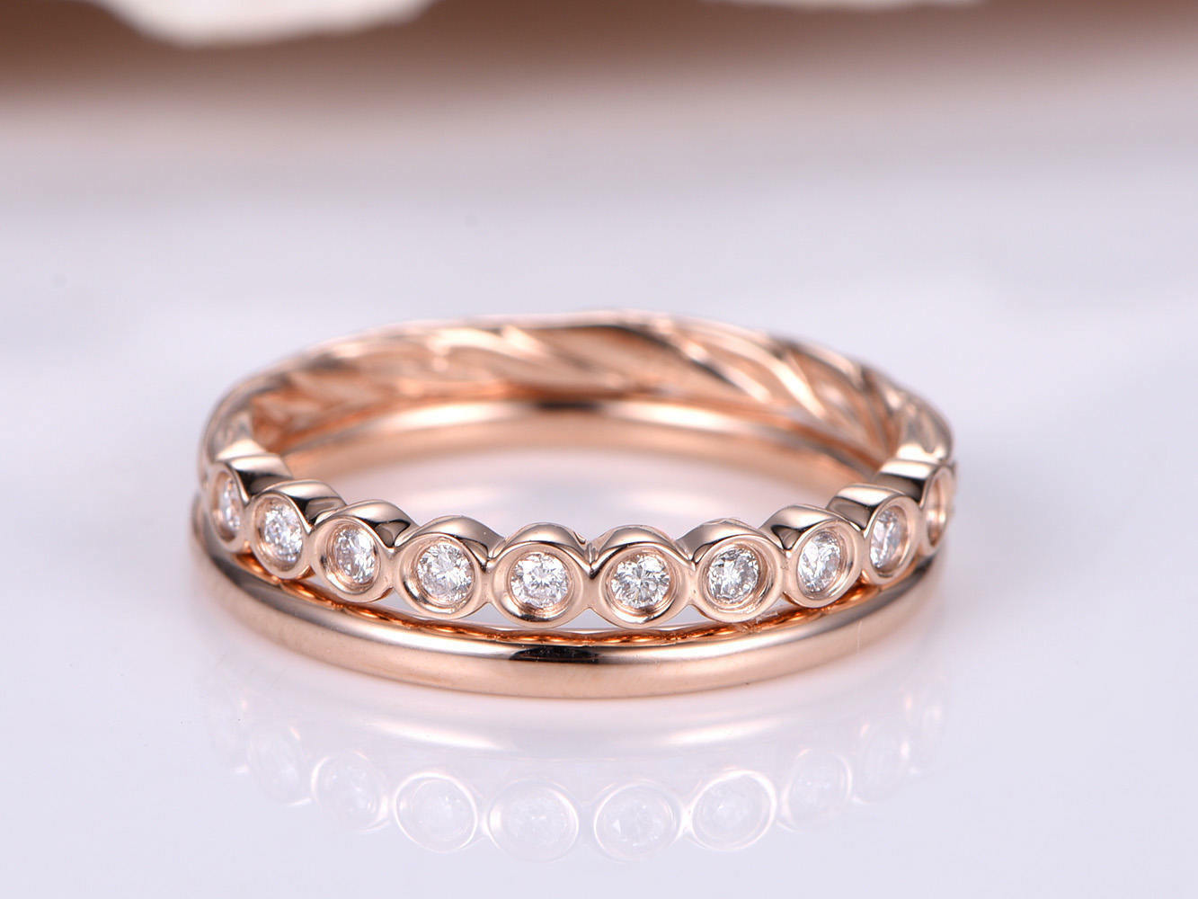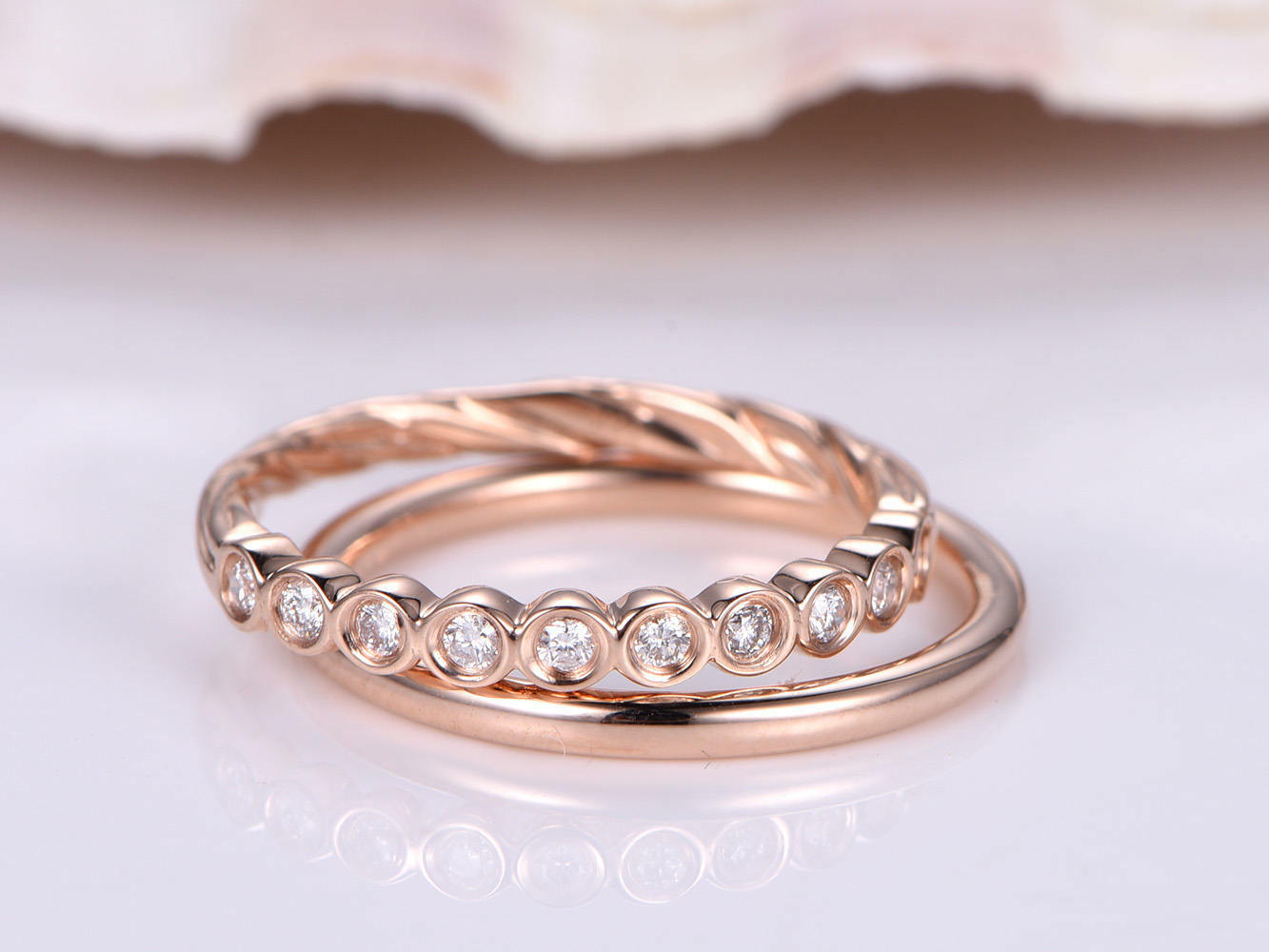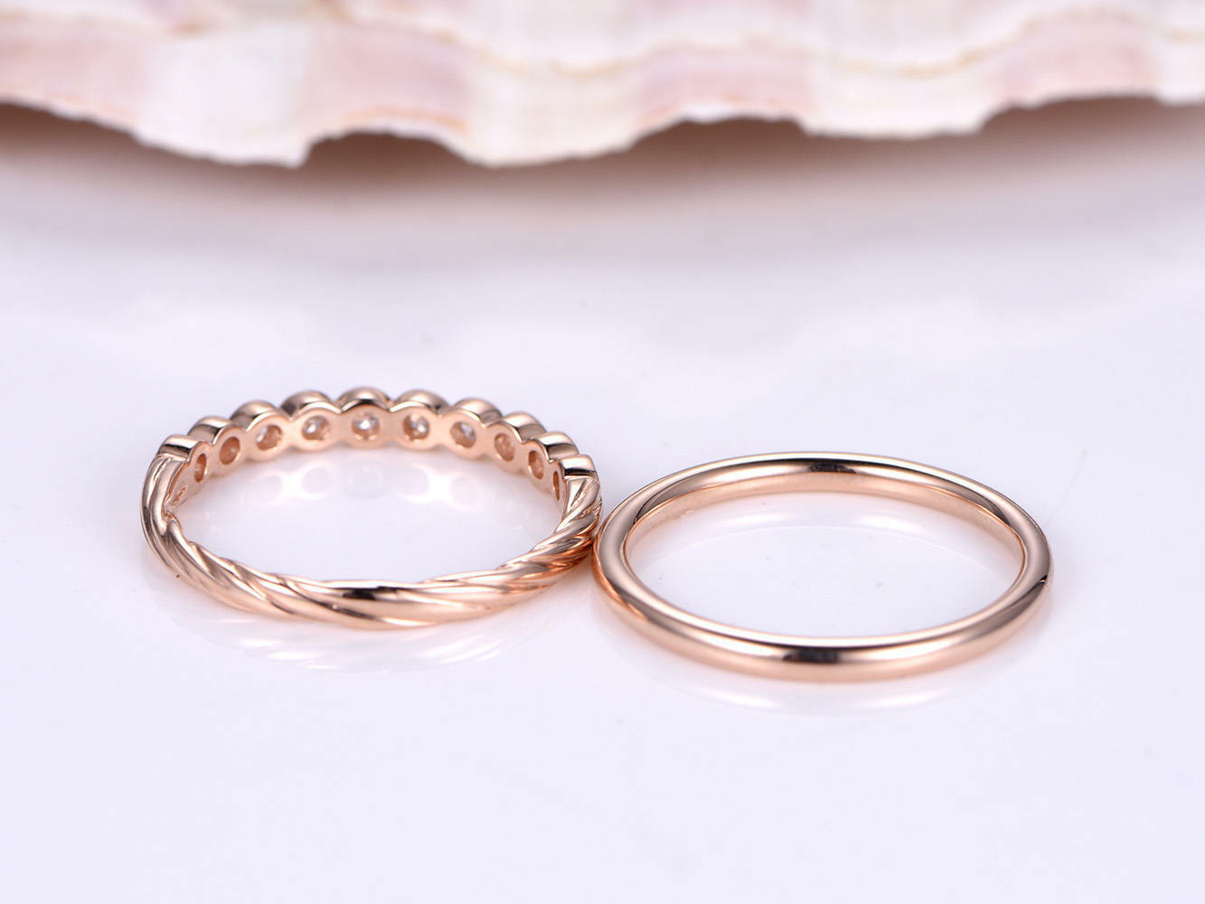 Half Eternity Bridal Set Engagement Ring 1ct Round Diamond 14k Rose Gold Finish