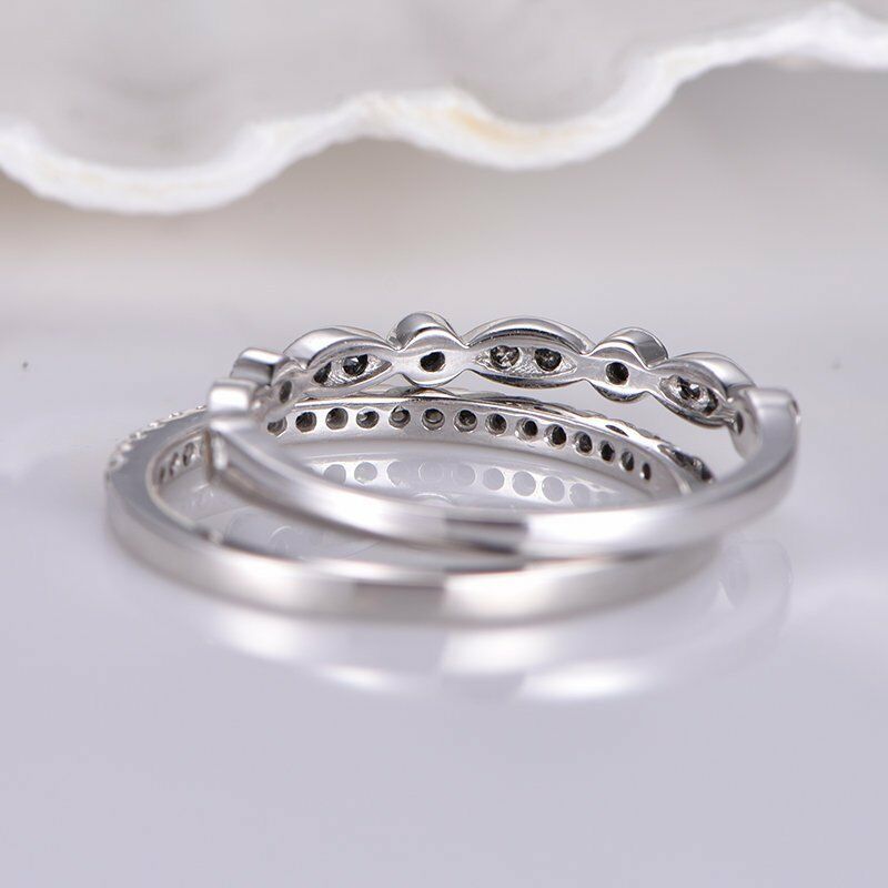 Half Eternity Bridal Set Engagement Ring 1ct Round Diamond 14k White Gold Finish