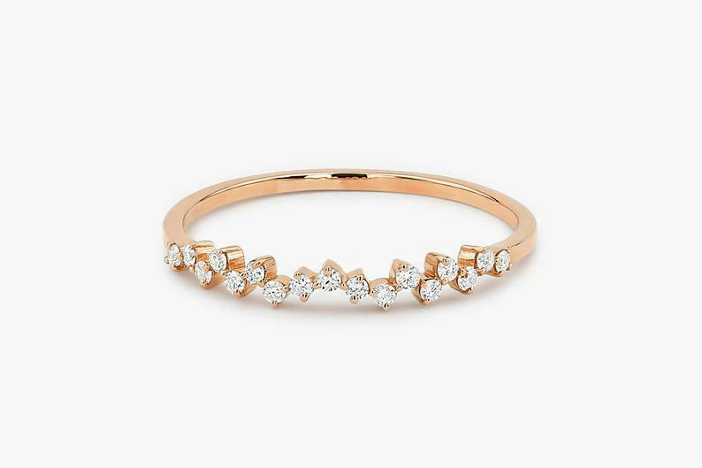 Half Eternity Petite Wedding Ring Band 1ct Round Cut Diamond 14k RoseGold Finish
