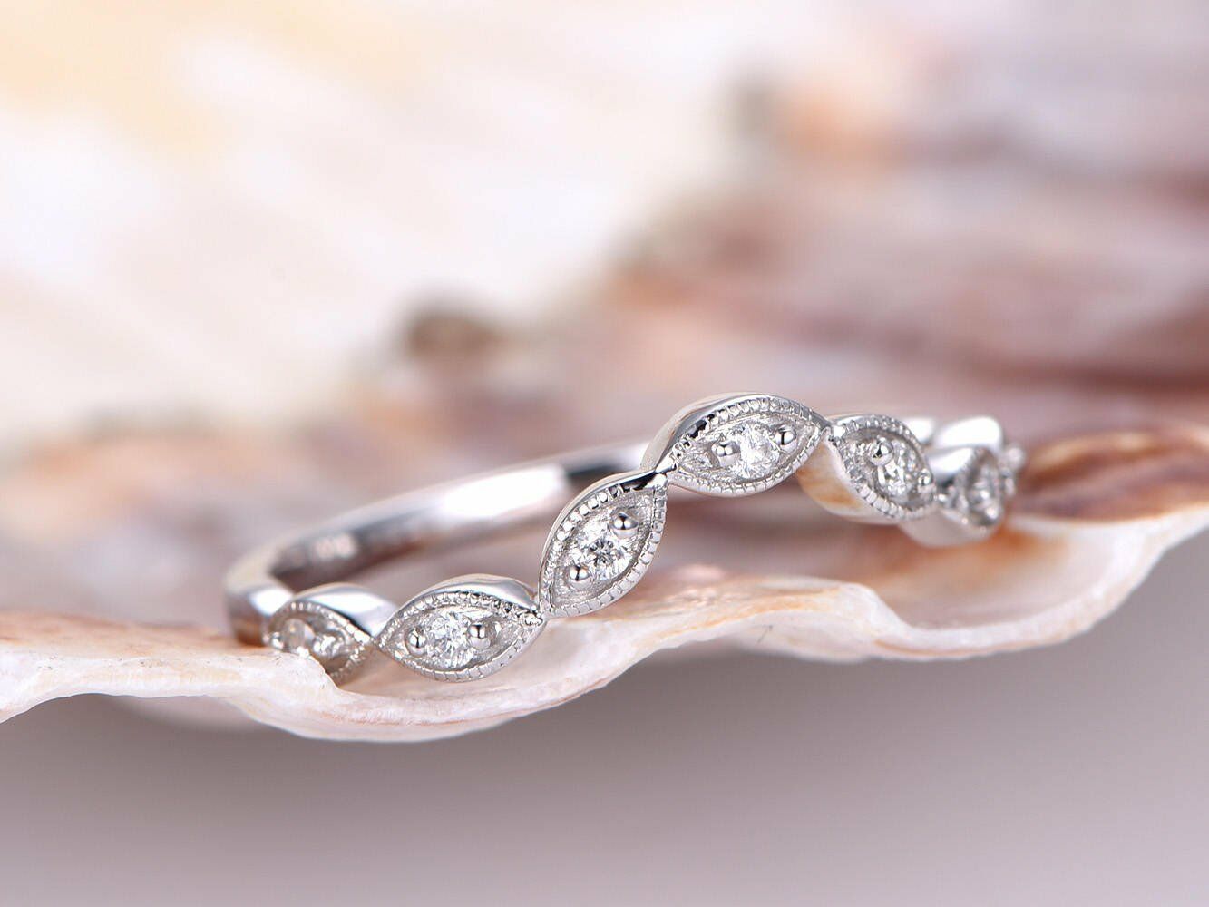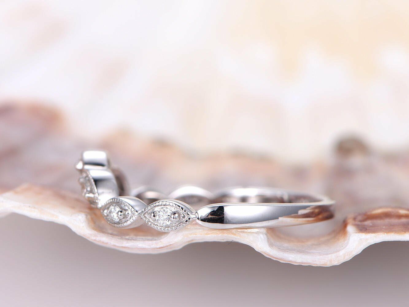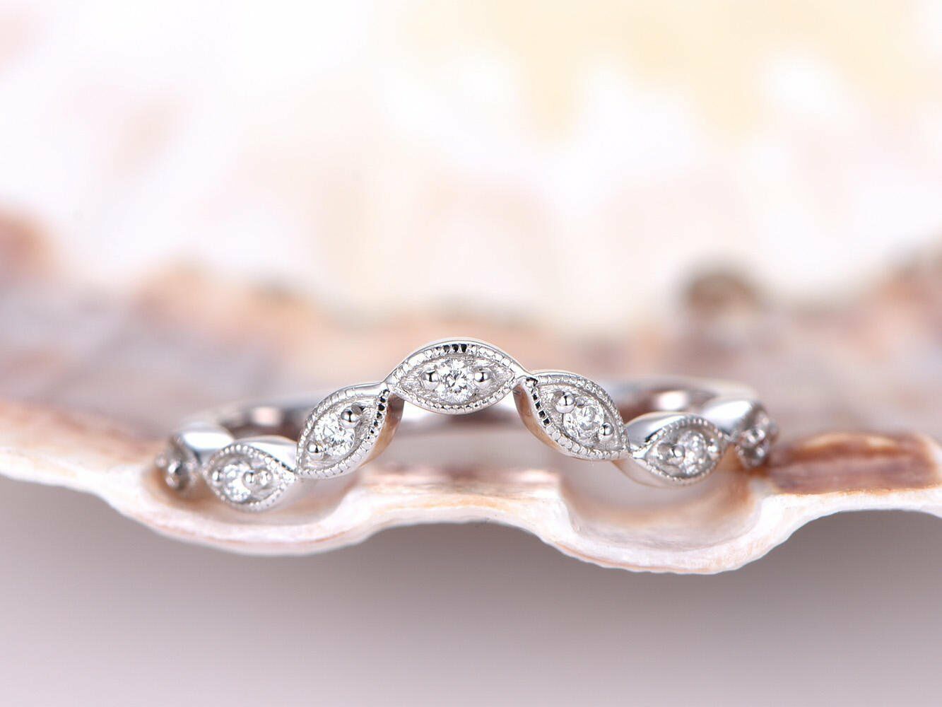 Half Eternity V Milgrain Wedding Ring Band 1ct Round Diamond 14k White Gold Over