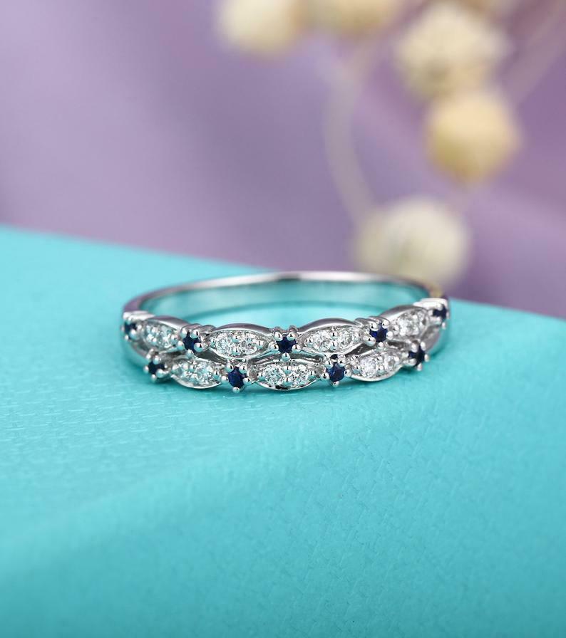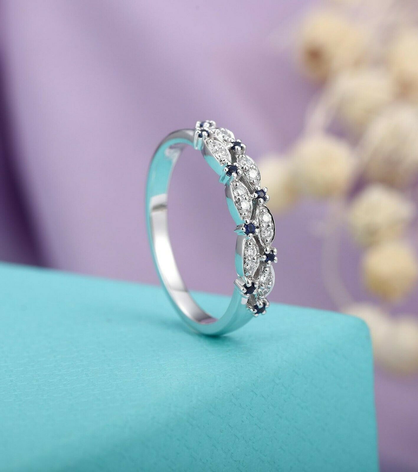 Half Eternity Wedding Band 1.5ct Round Cut Diamond Sapphire 14k WhiteGold Finish