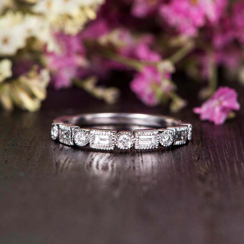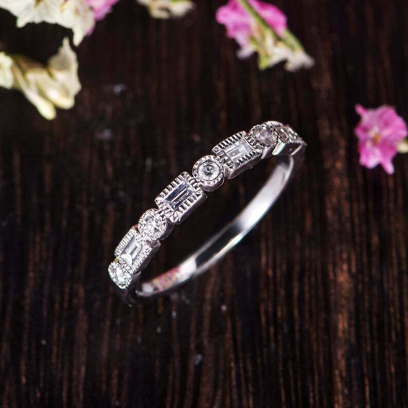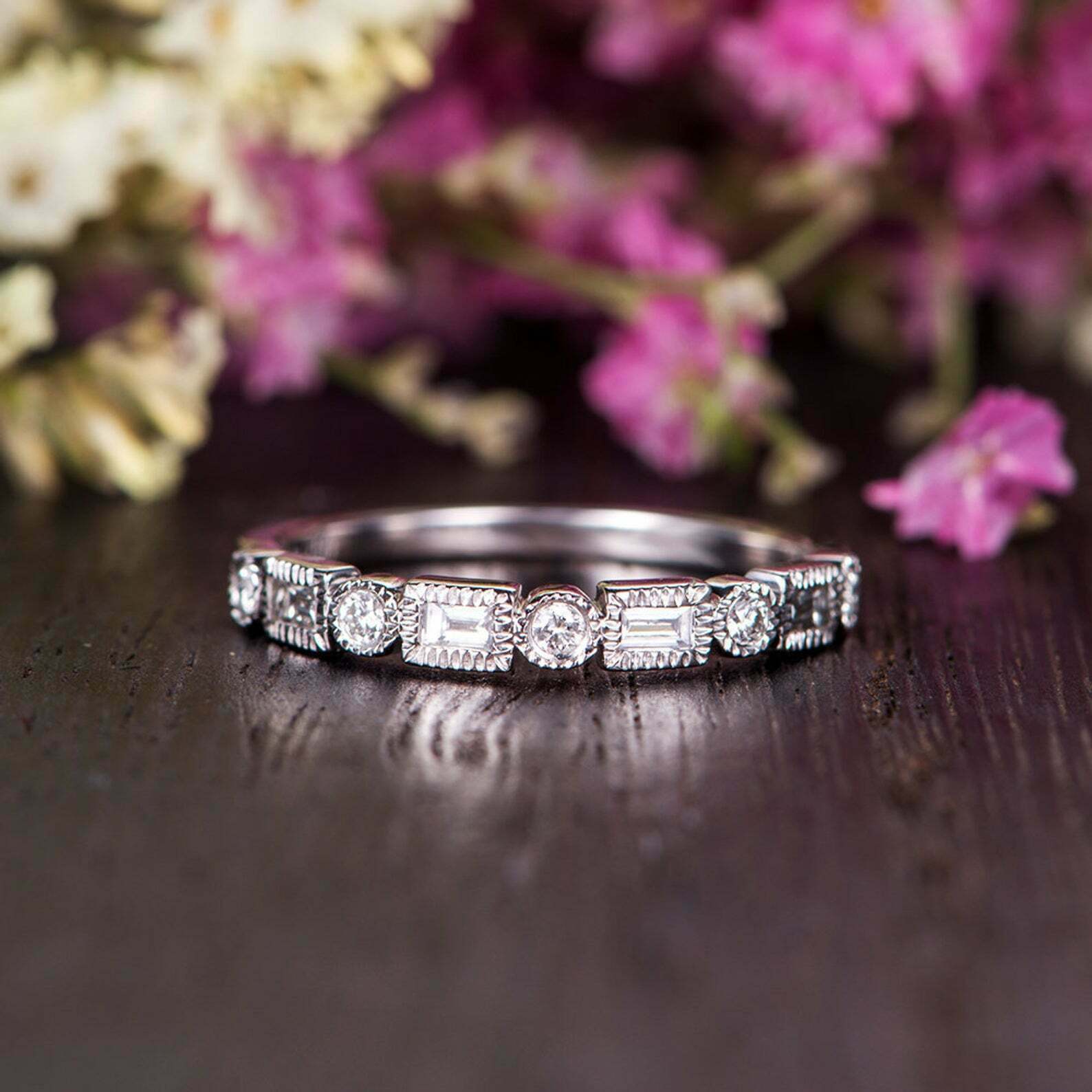 Half Eternity Wedding Ring Band 1.5ct Baguette Cut Diamond 14k White Gold Finish