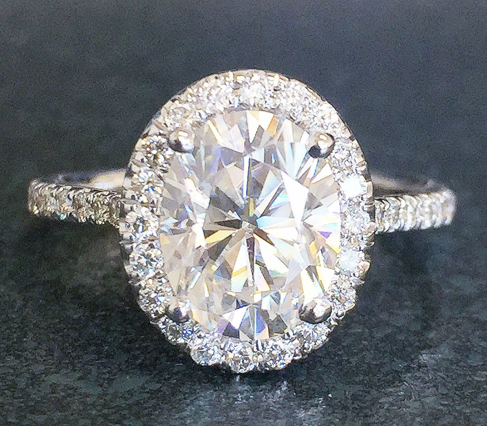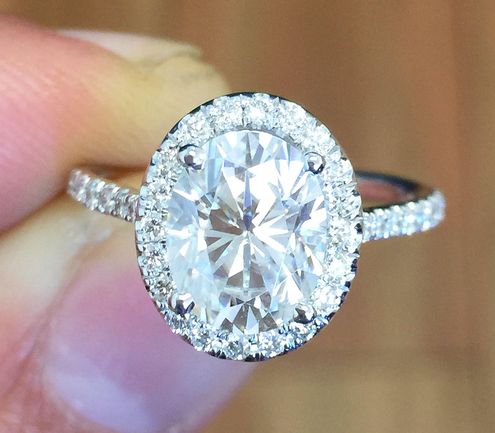 Halo Accent Solitaire Engagement Ring 1.3ct Oval Cut Diamond 14k White Gold Over