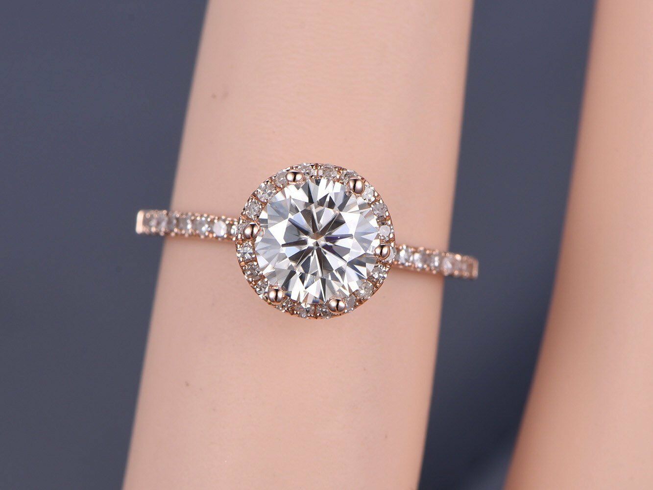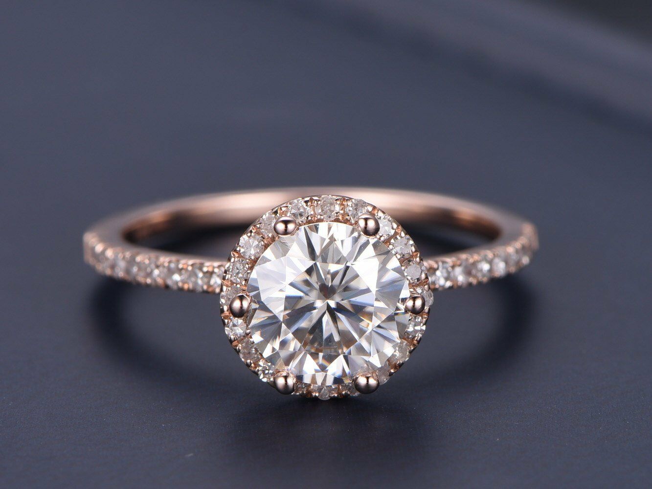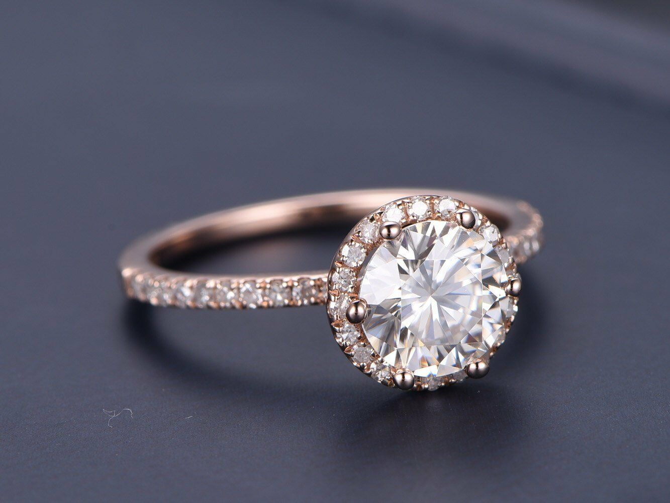 Halo Accent Solitaire Engagement Ring 1ct Round Cut Diamond 14k Rose Gold Finish