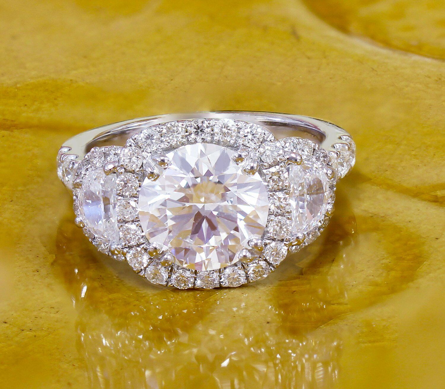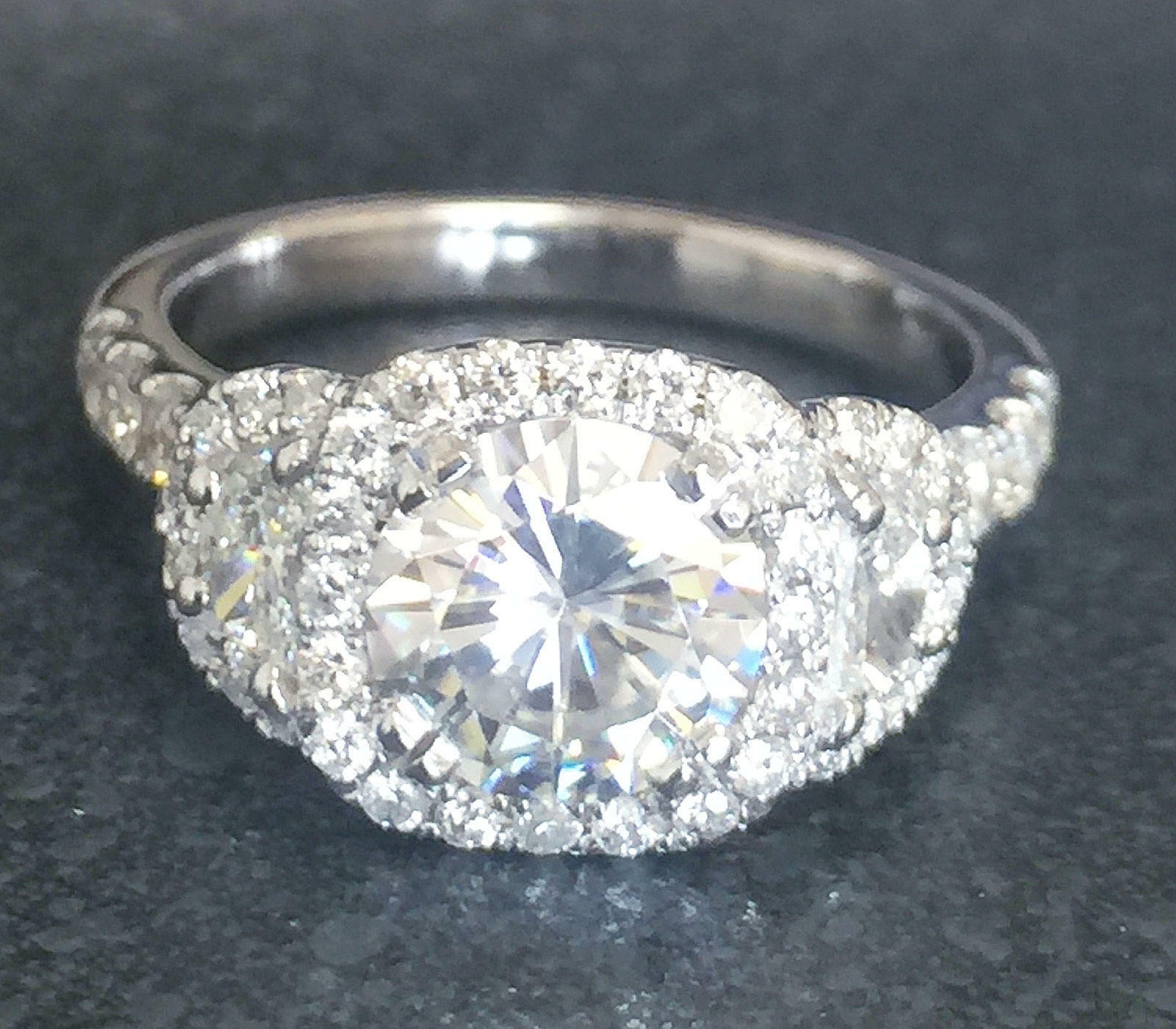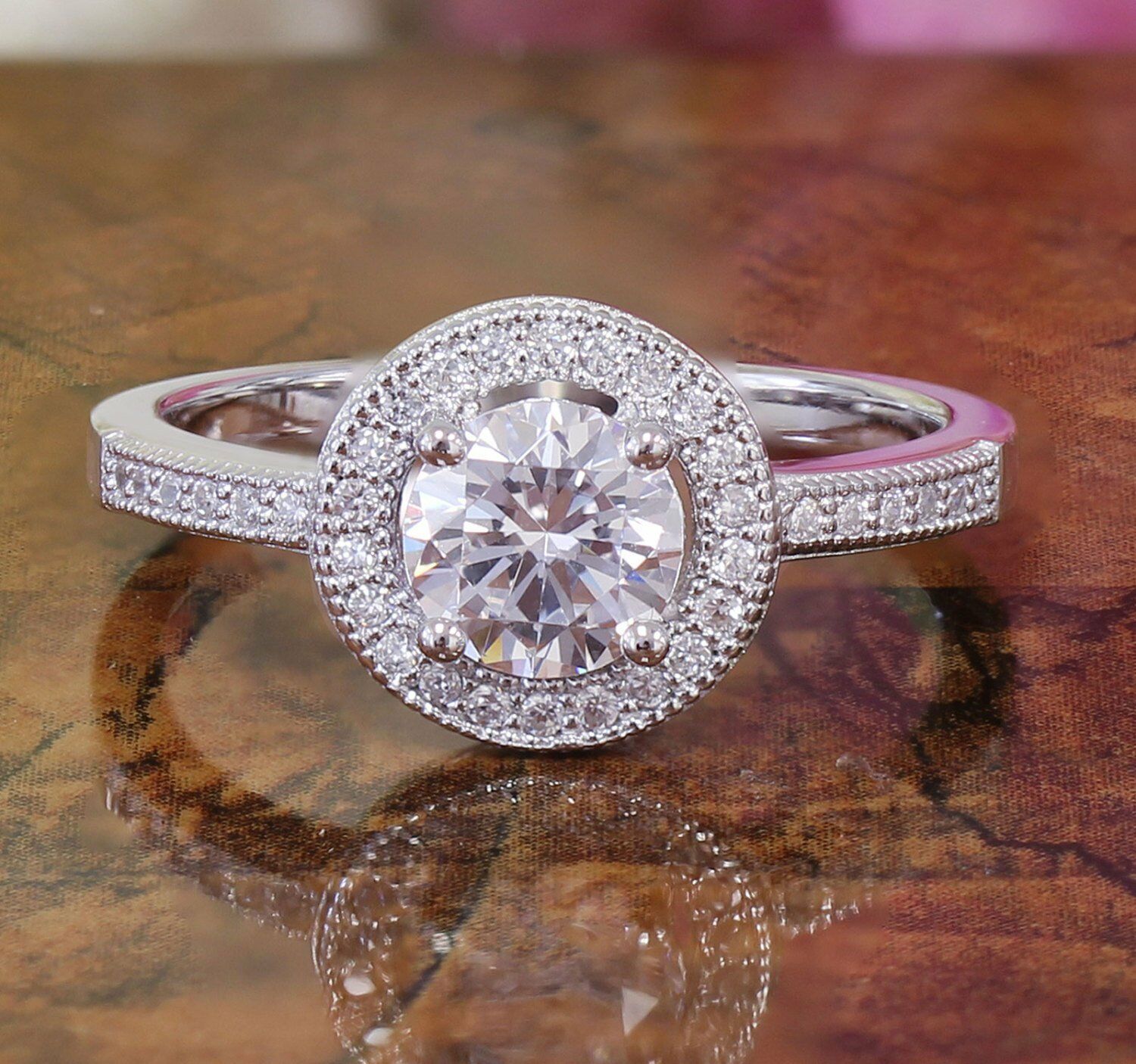 Halo Accent Solitaire Engagement Ring 3ct Round Cut Diamond 14k WhiteGold Finish
