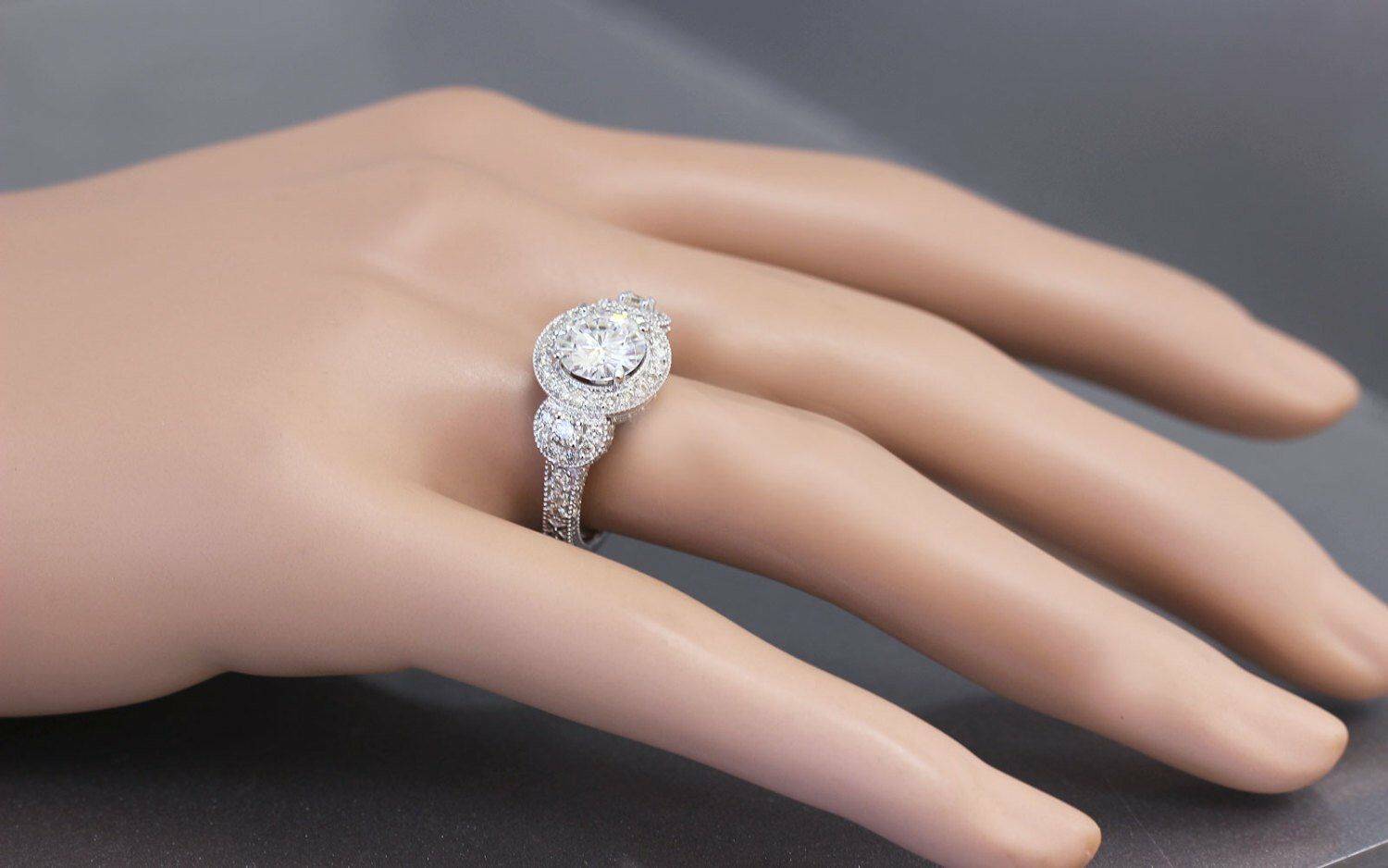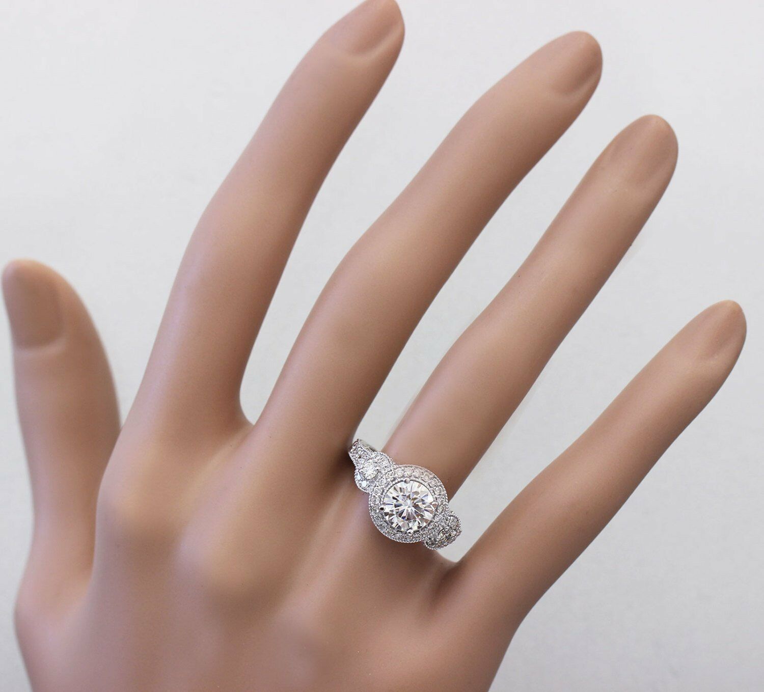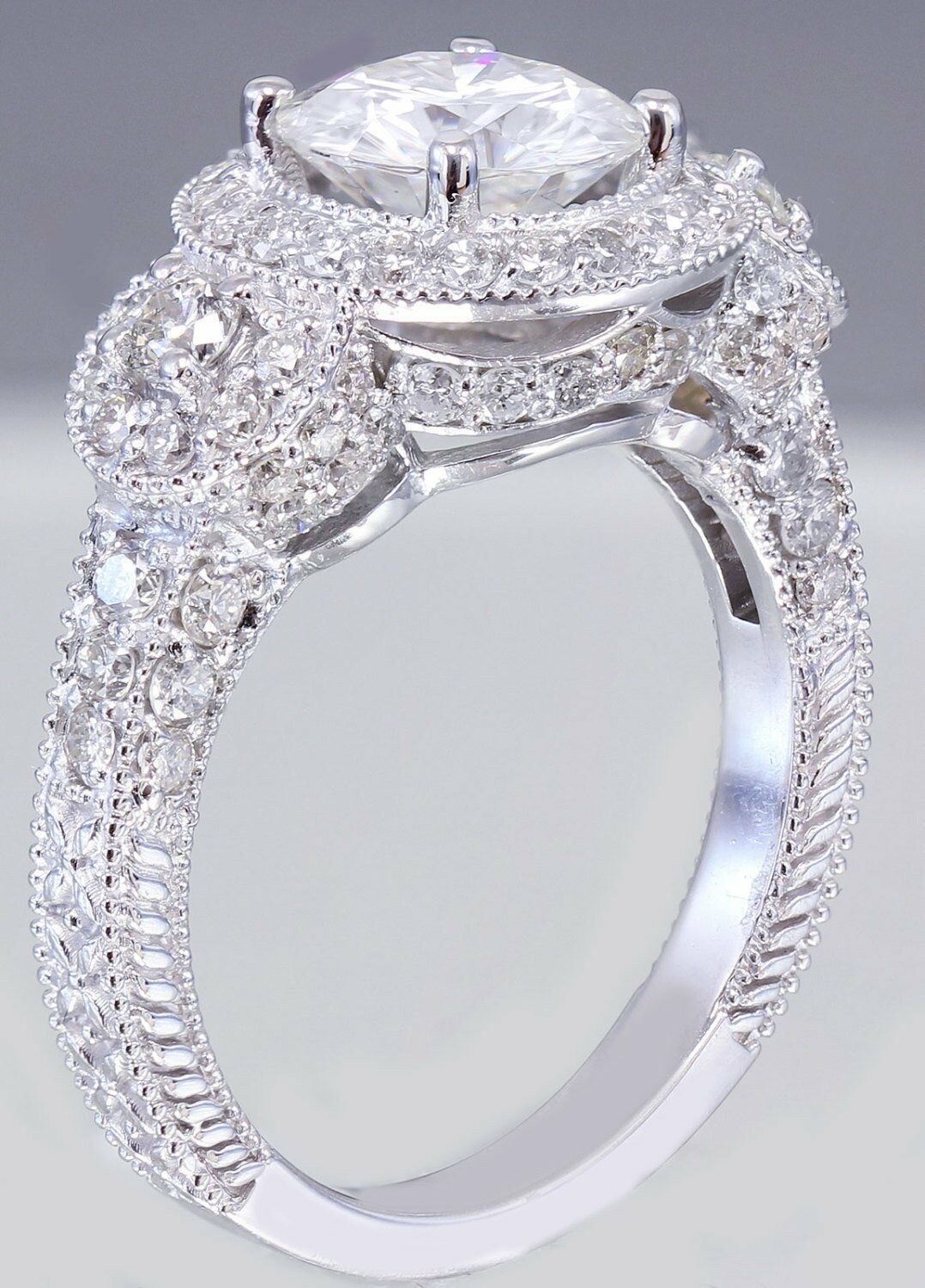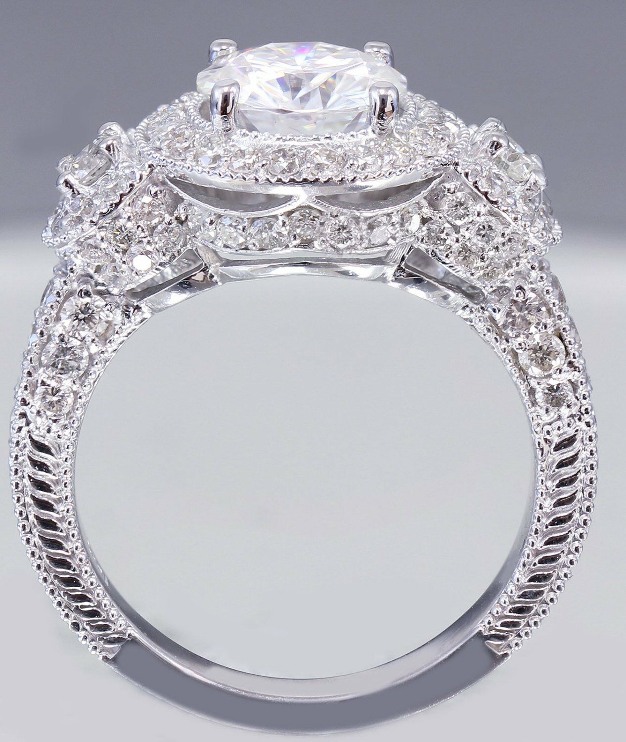 Halo Antique Vintage Engagement Ring 3ct Round Cut Diamond 14k White Gold Finish