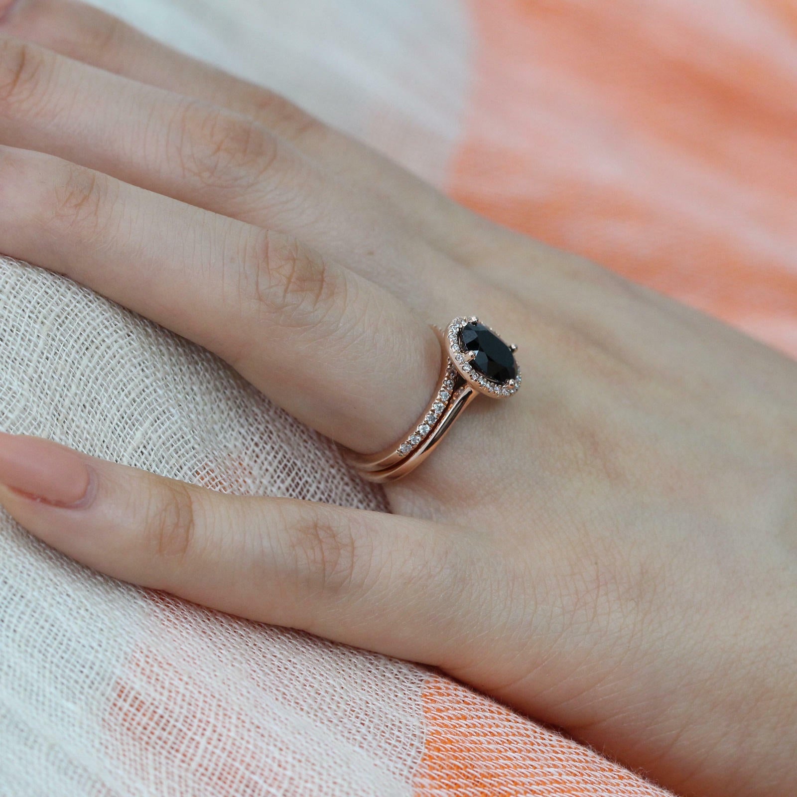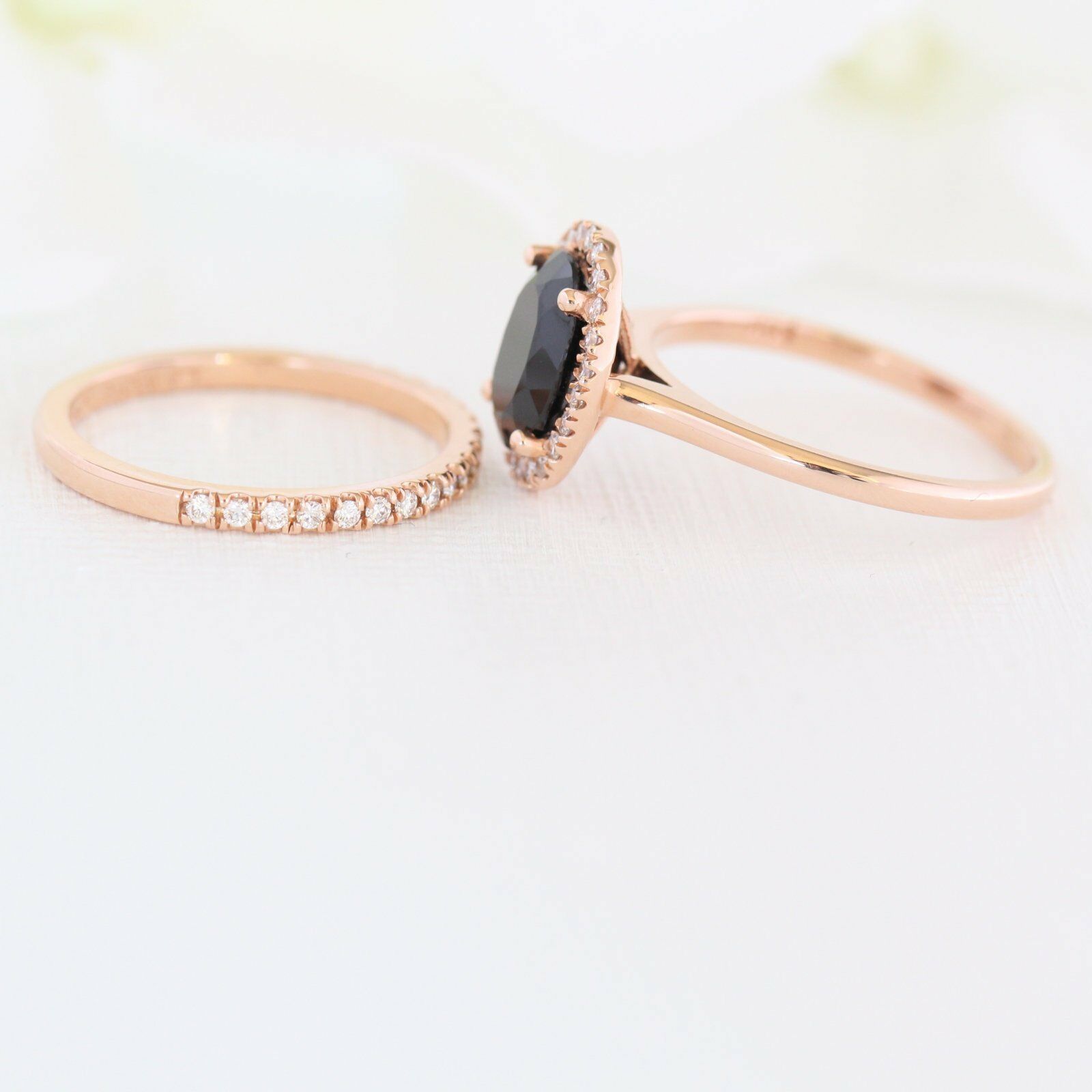 Halo Bridal Set Engagement Ring 1.2ct Oval Cut VVS1 Diamond 14k Rose Gold Finish