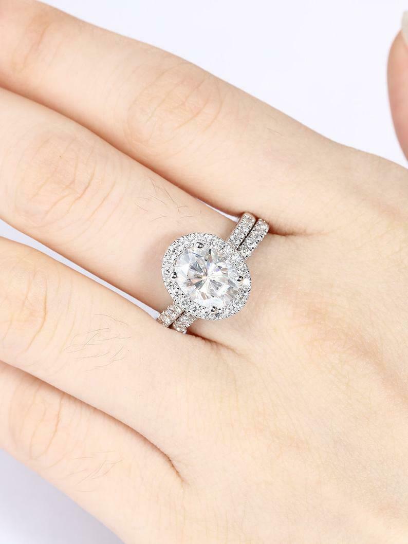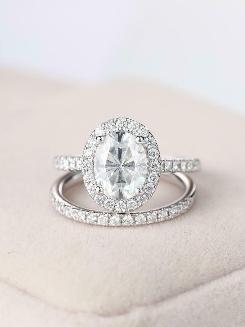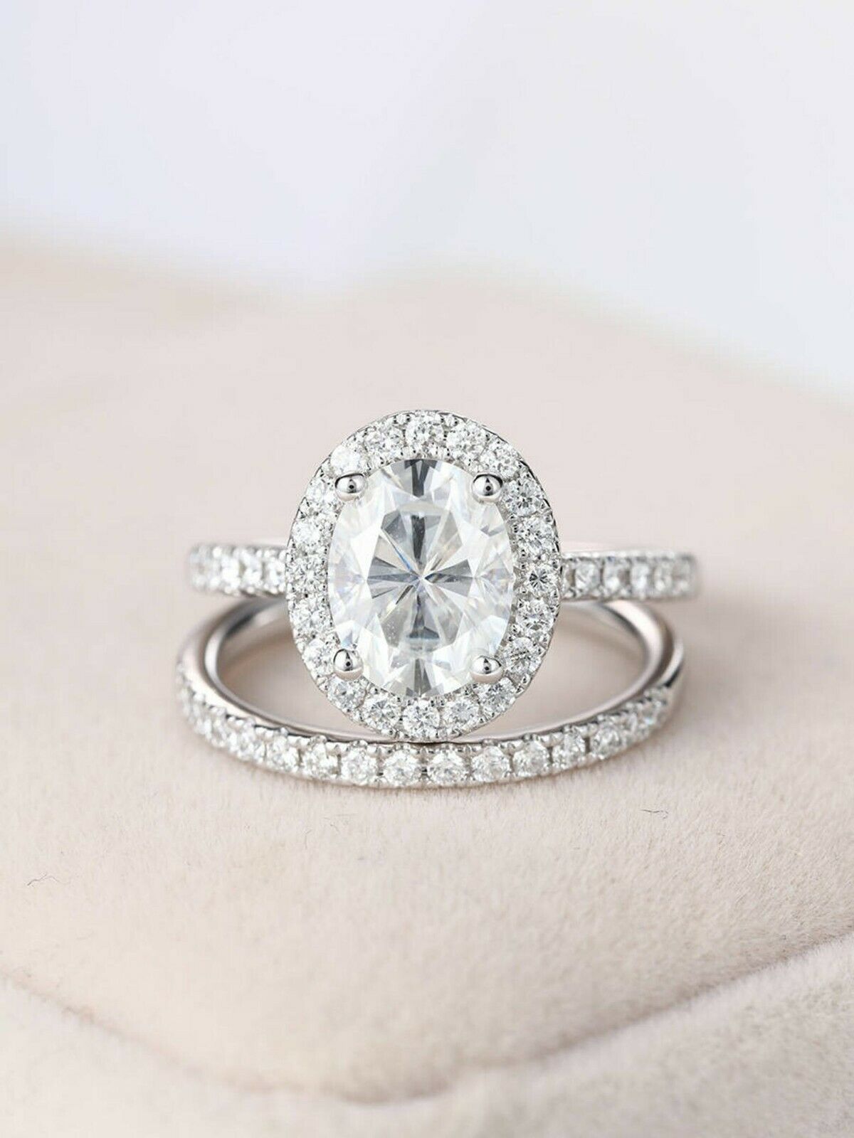 Halo Bridal Set Engagement Ring 2.3ct Oval Cut VVS1D Diamond 14k White Gold Over