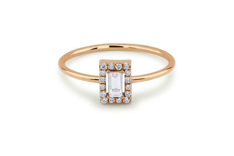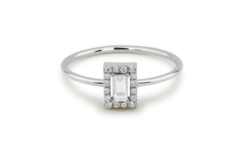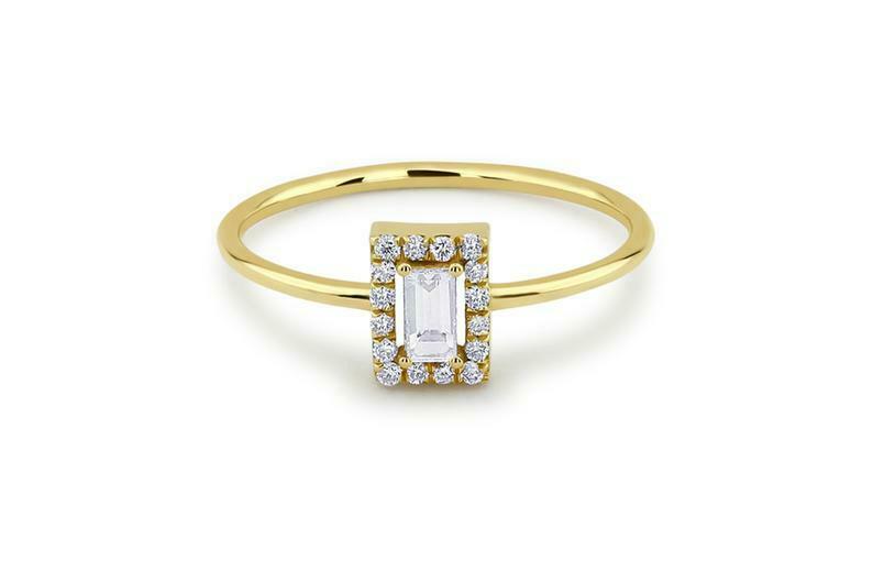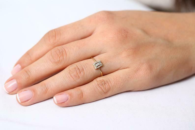 Halo Solitaire Engagement Ring 1.2ct Baguette Cut Diamond 14k Yellow Gold Finish