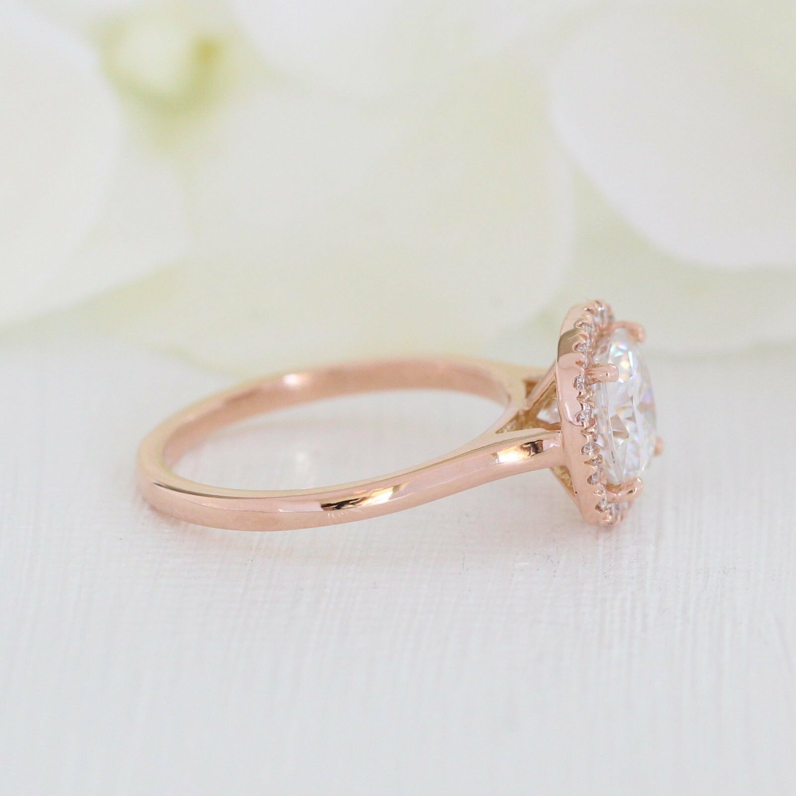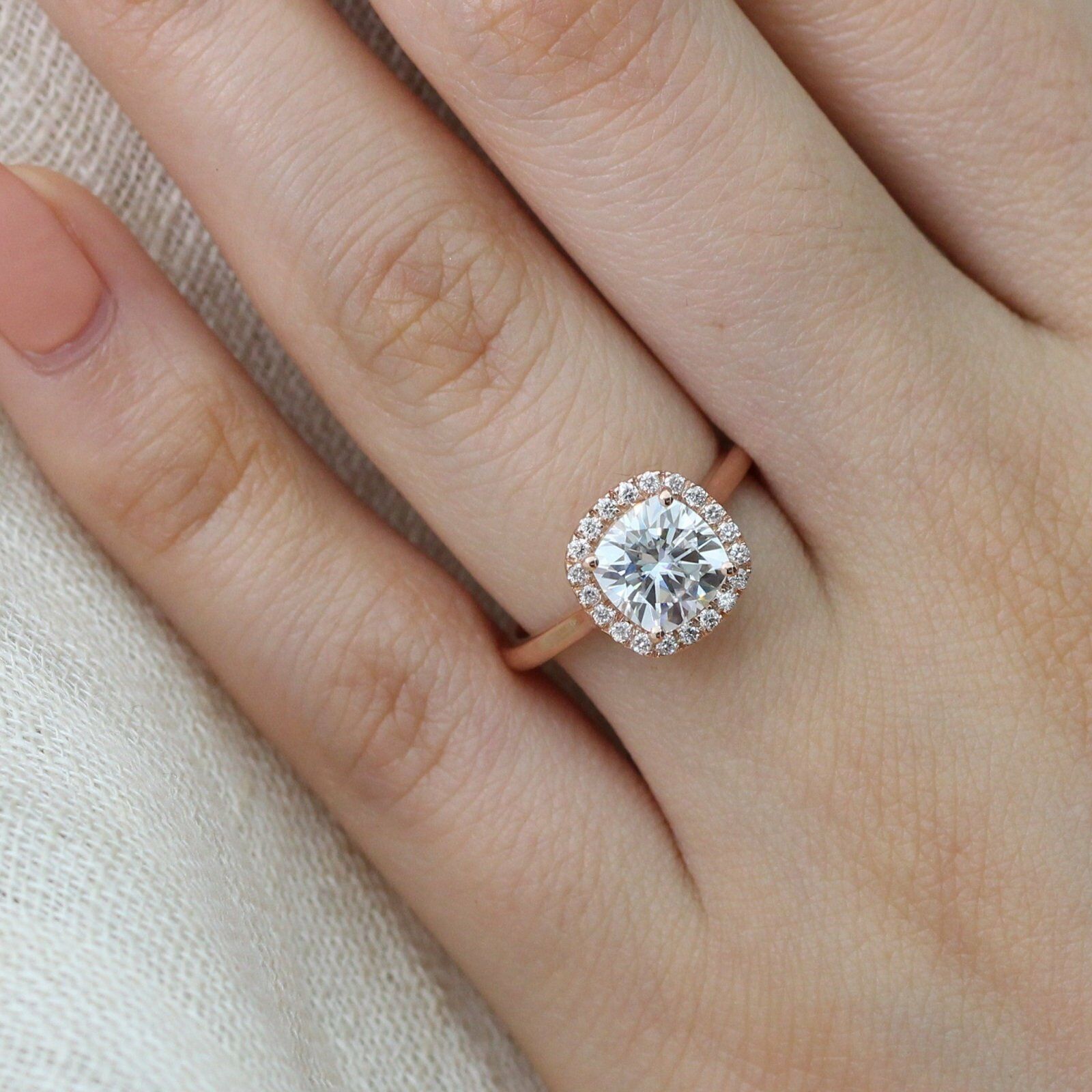 Halo Solitaire Engagement Ring 1.3ct Cushion Cut Diamond 14k Rose Gold Finish