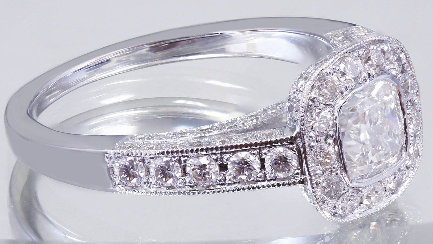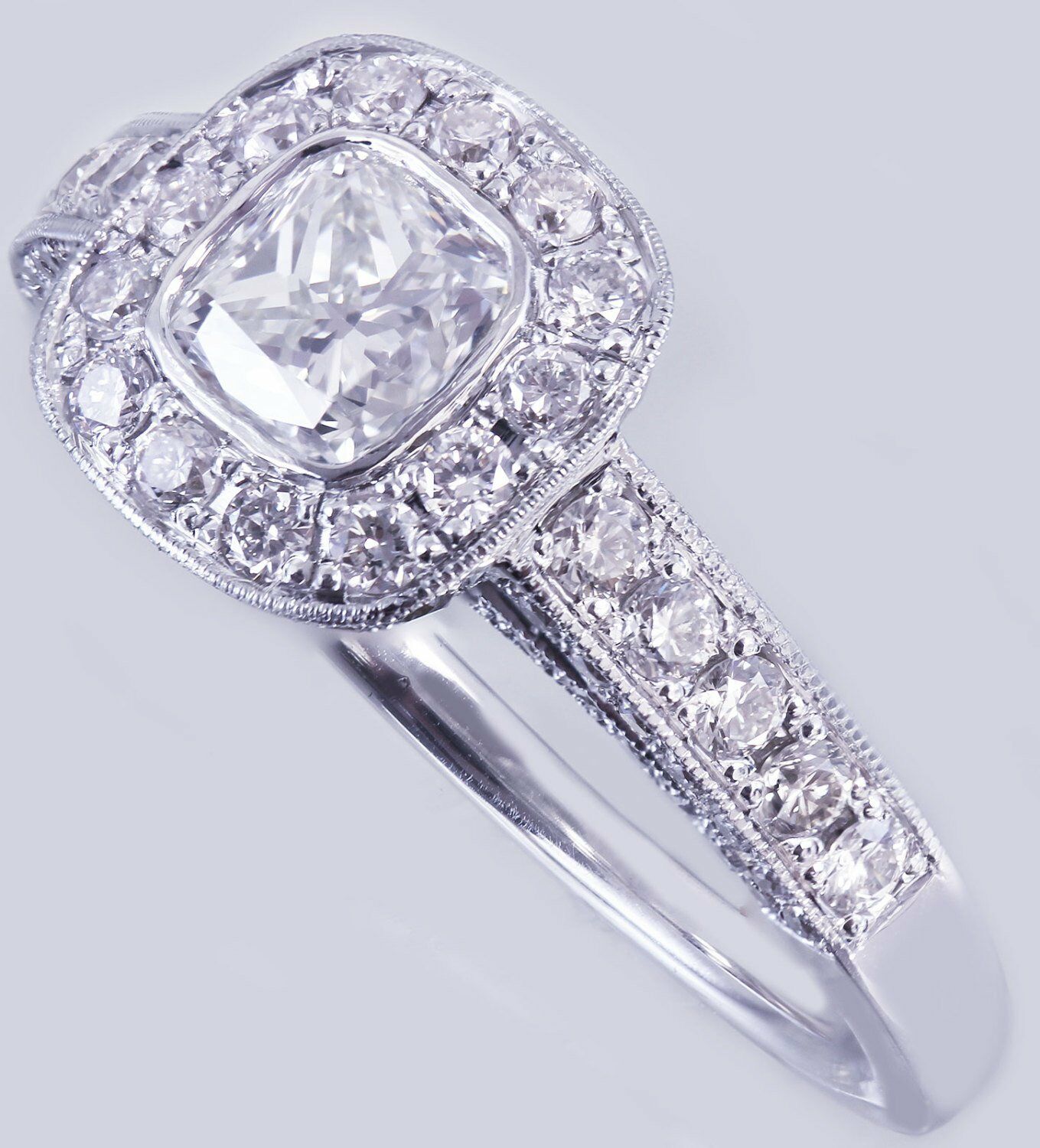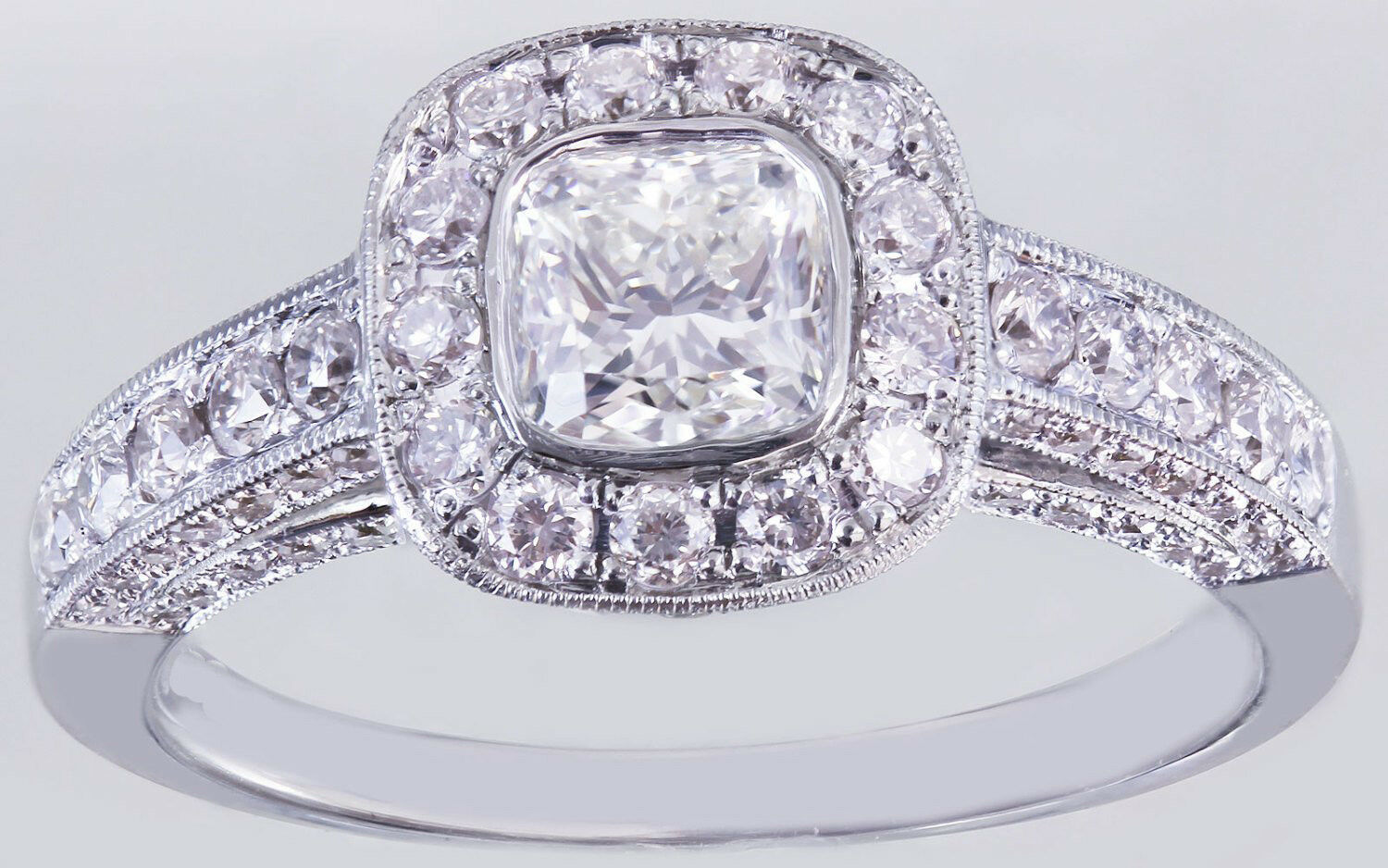 Halo Solitaire Engagement Ring 1.9ct Cushion Cut Diamond 14k White Gold Finish