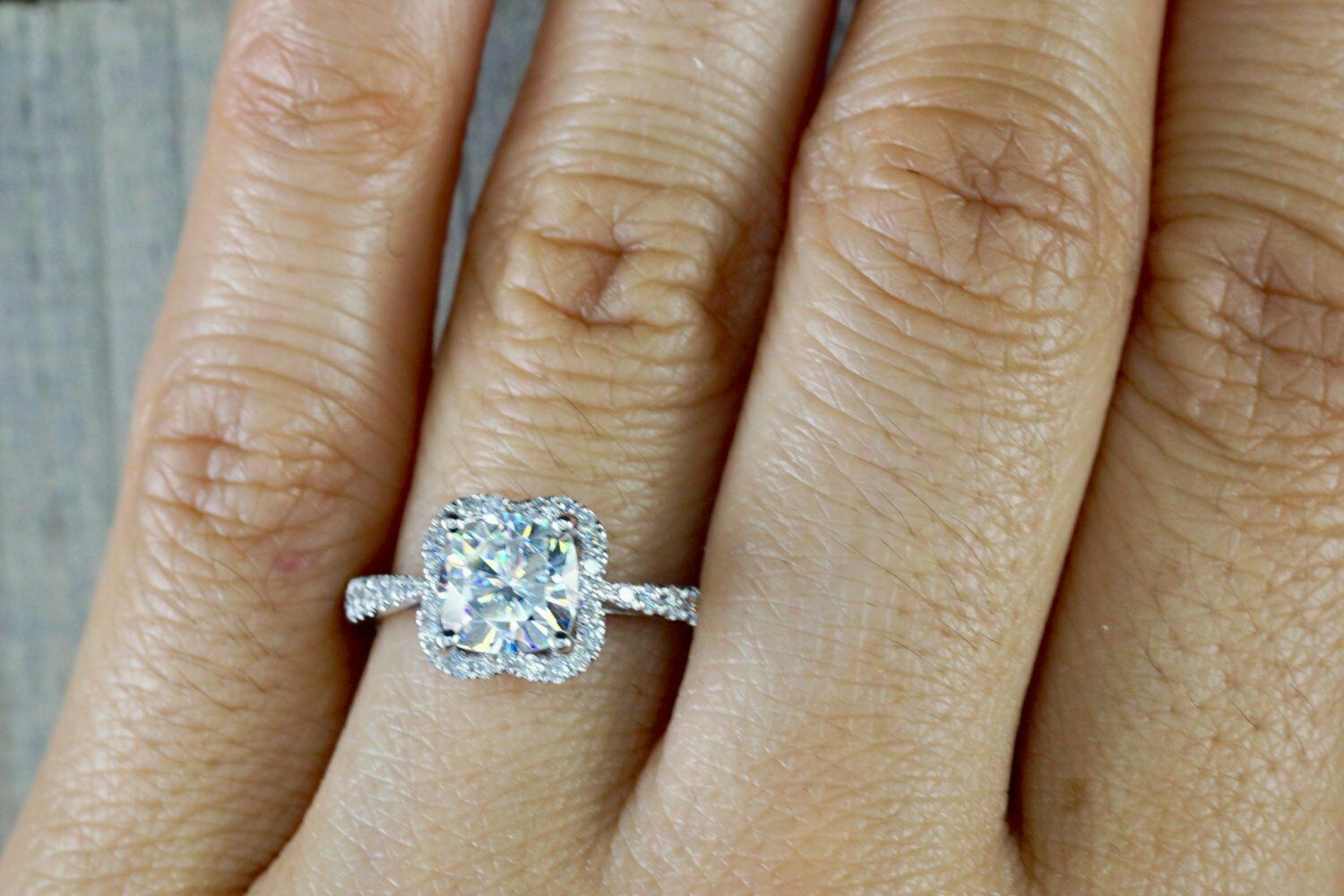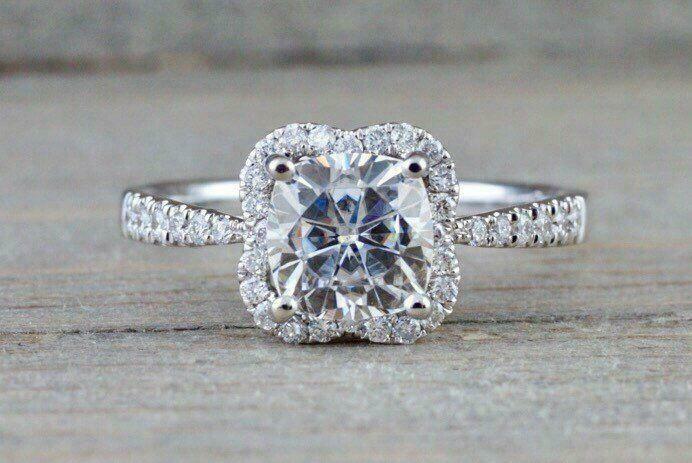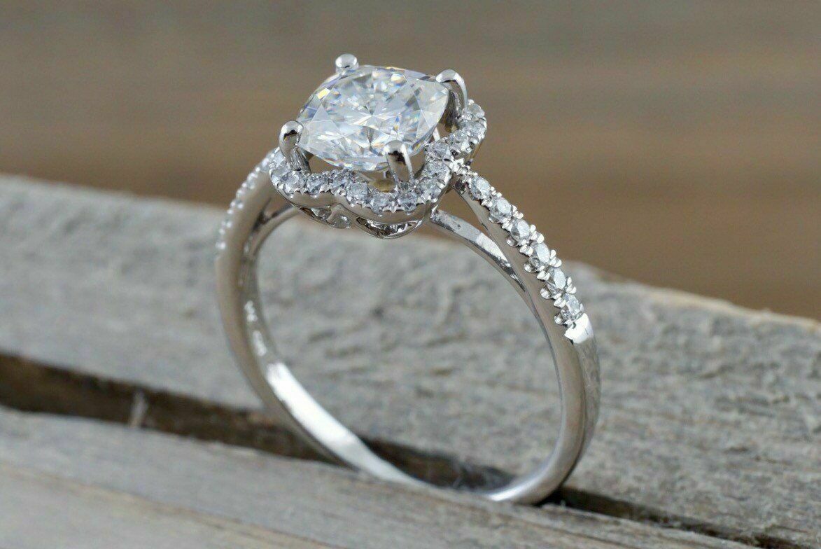 Halo Solitaire Engagement Ring 1.9ct Cushion Cut Diamond 14k White Gold Finish