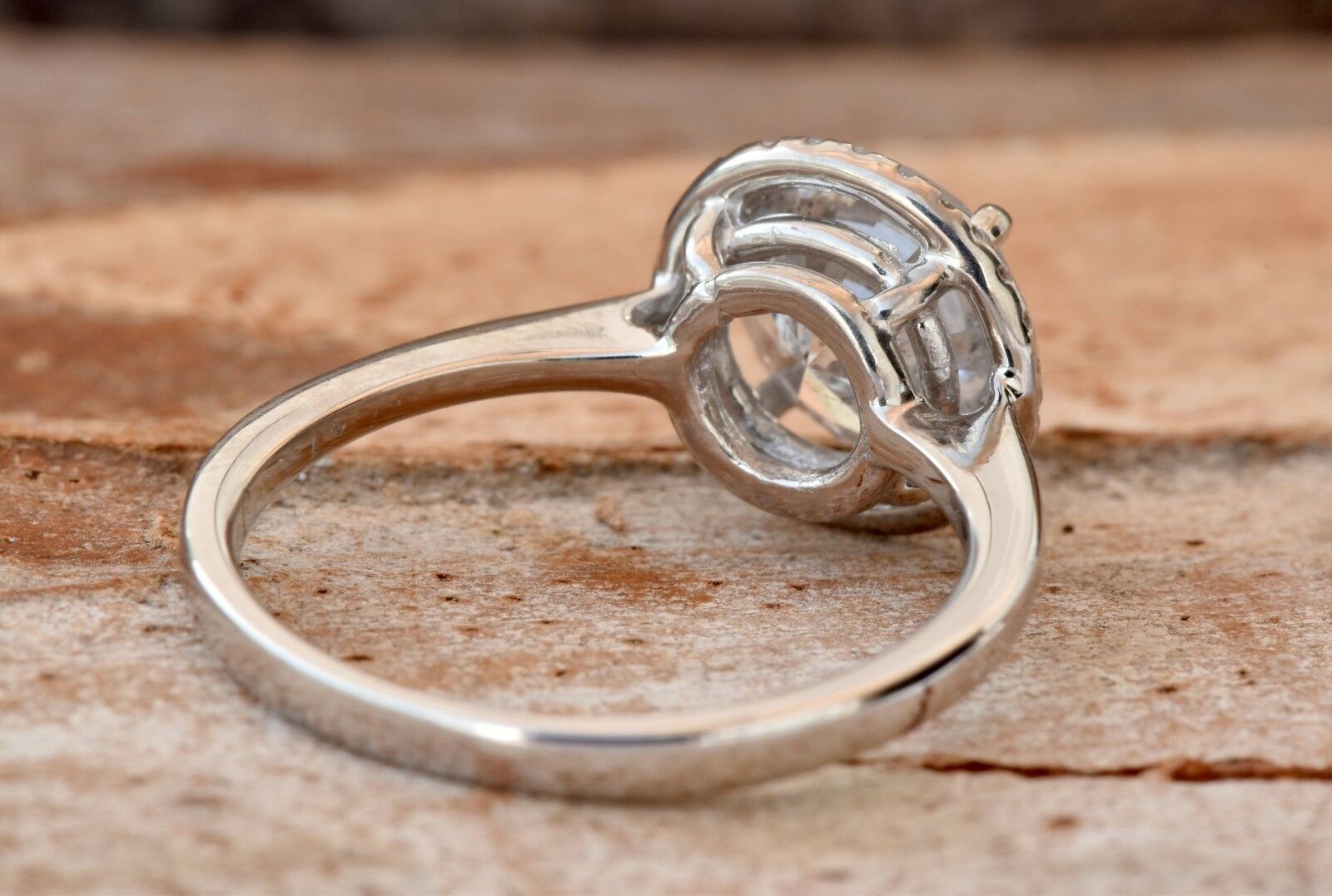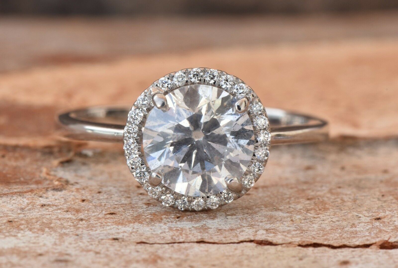 Halo Solitaire Engagement Ring 1ct Round Cut VVS1D Diamond 14k White Gold Finish