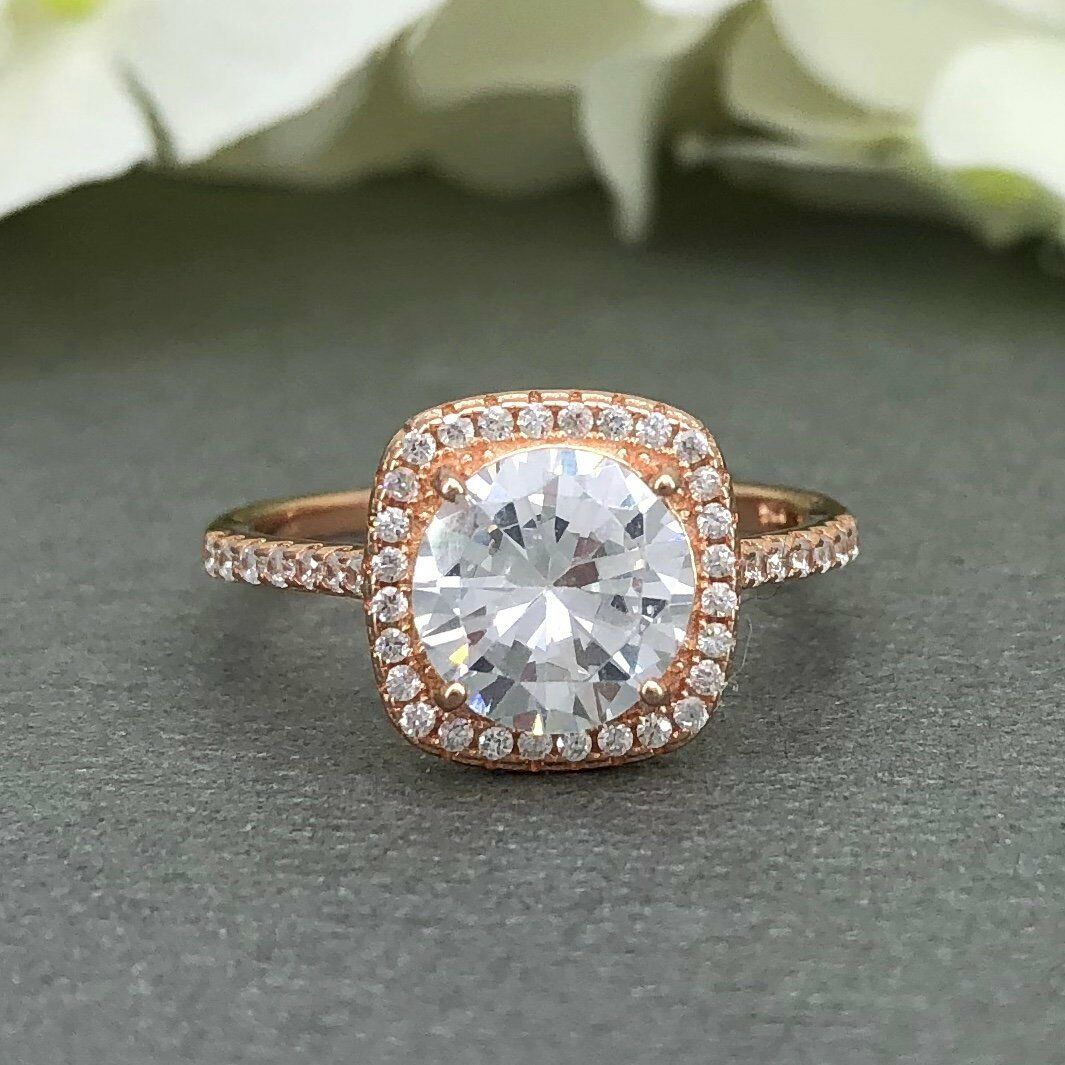 Halo Solitaire Engagement Ring 2ct Round Cut VVS1D Diamond 14k Rose Gold Finish