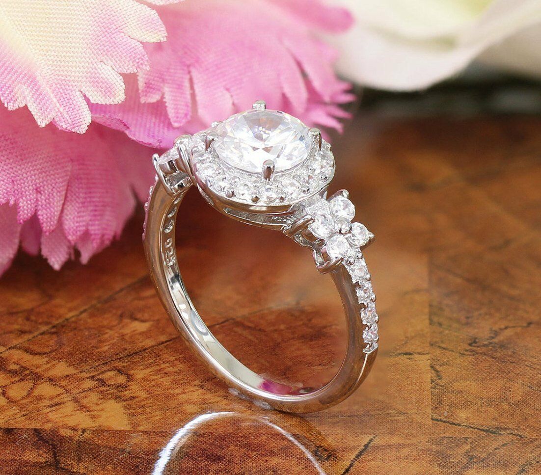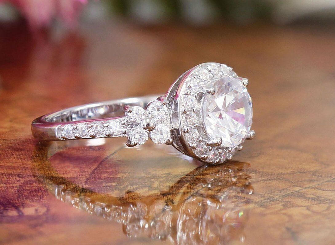 Halo Solitaire Engagement Ring 2ct Round Cut VVS1D Diamond 18k White Gold Finish