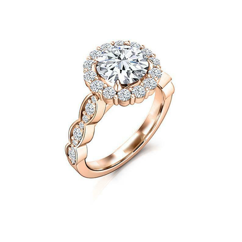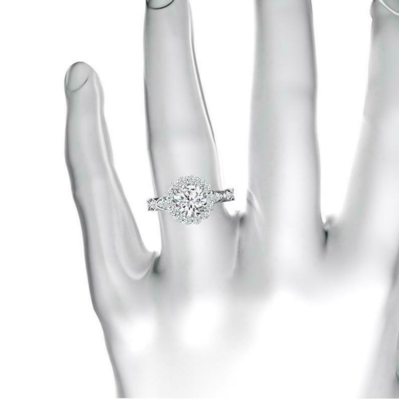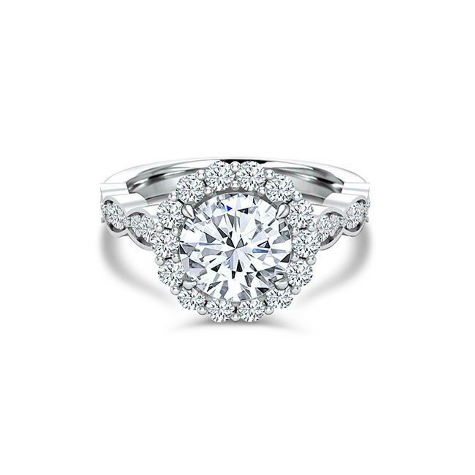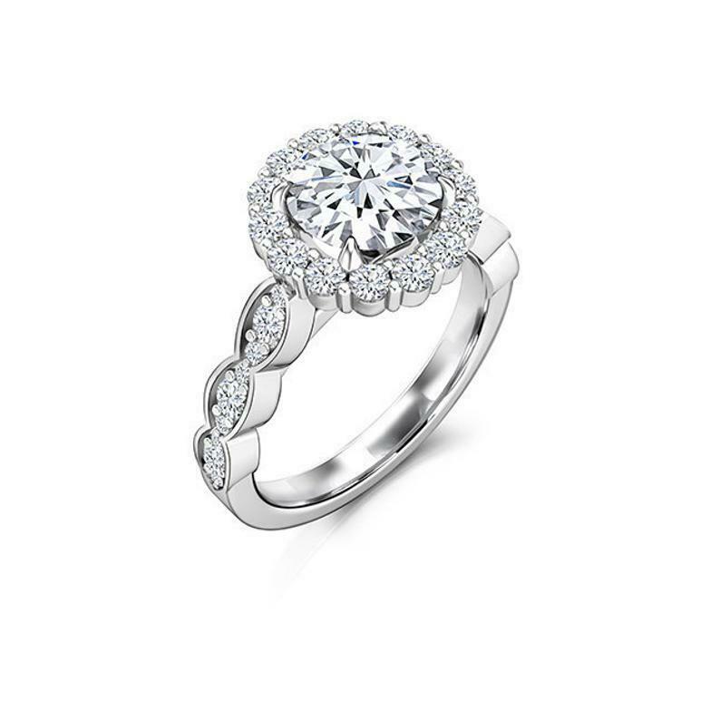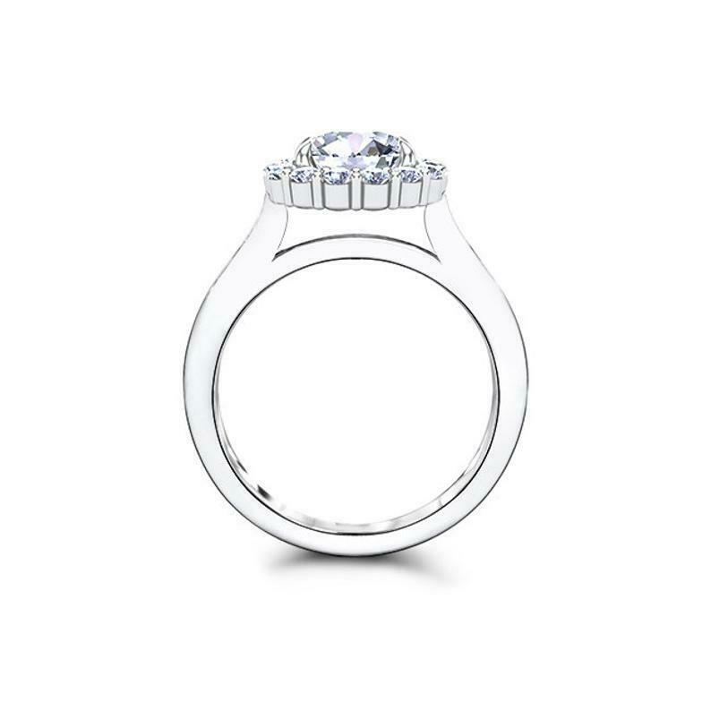 Halo Solitaire with Accent Engagement Ring 2ct Round Diamond 18k White Gold Over