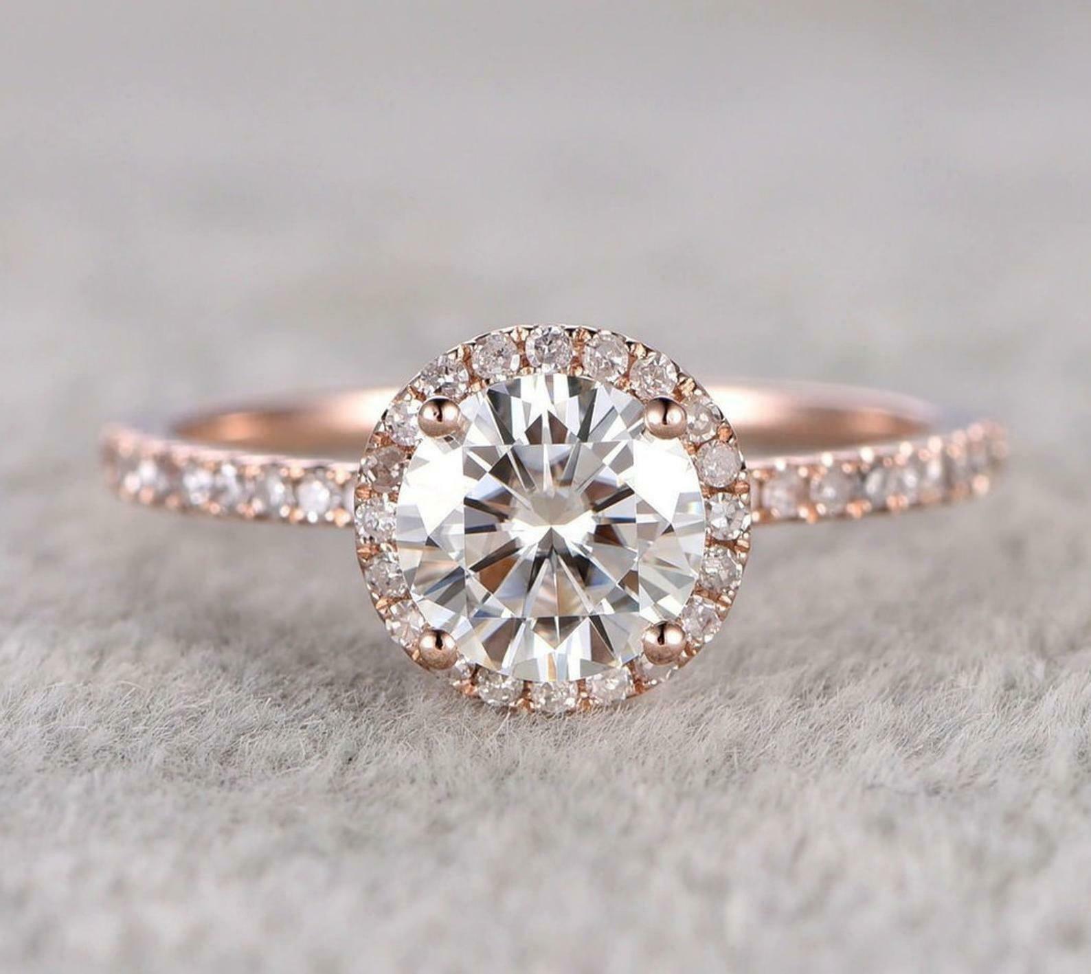Halo Solitaire with Accents Engagement Ring 2ct Round Cut Diamond 14k Rose Gold Over