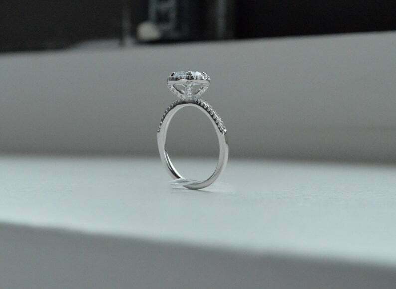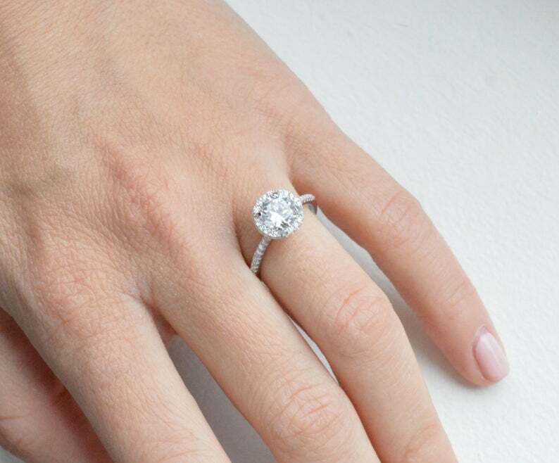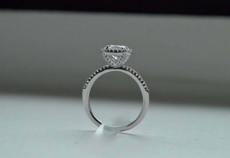 Halo Solitaire with Accents Engagement Ring 2ct Round Diamond 14k WhiteGold Over