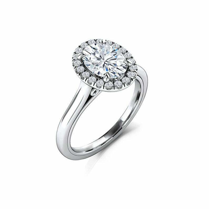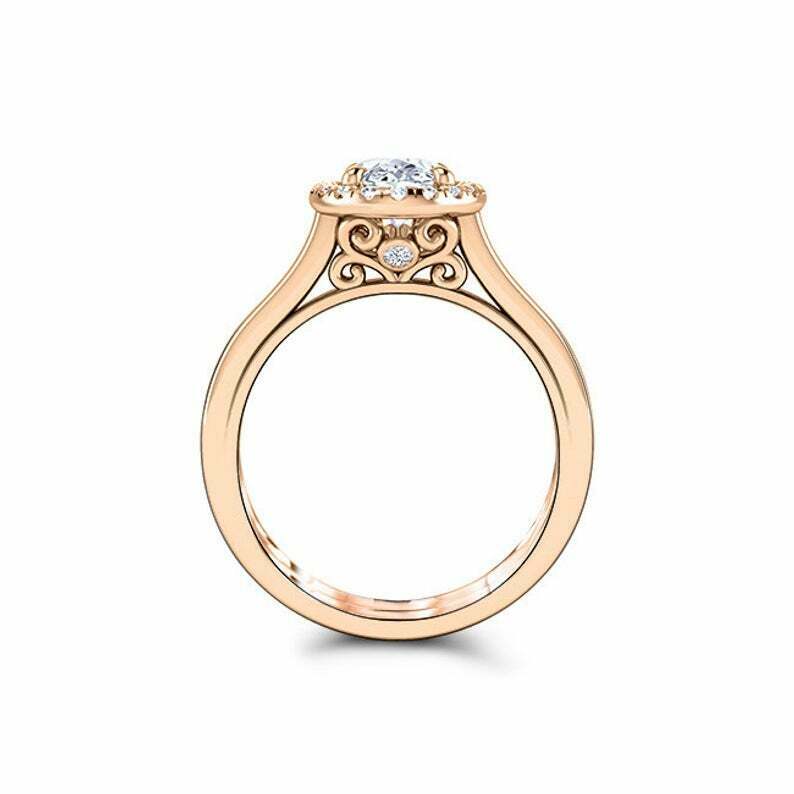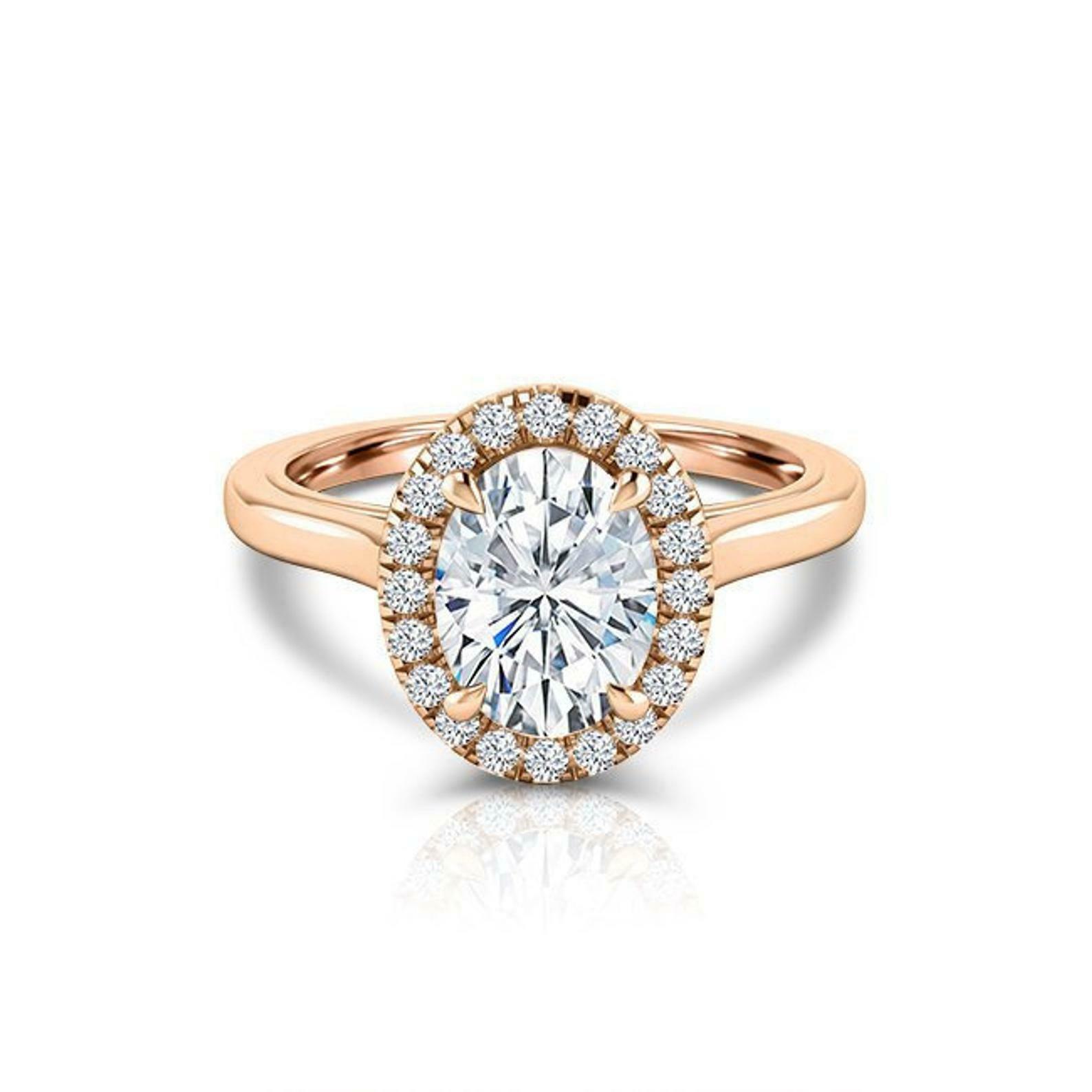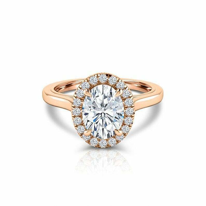 Halo Solitaire with Accents Engagement Ring 1.25ct Oval Cut Diamond 14k Rose Gold Finish