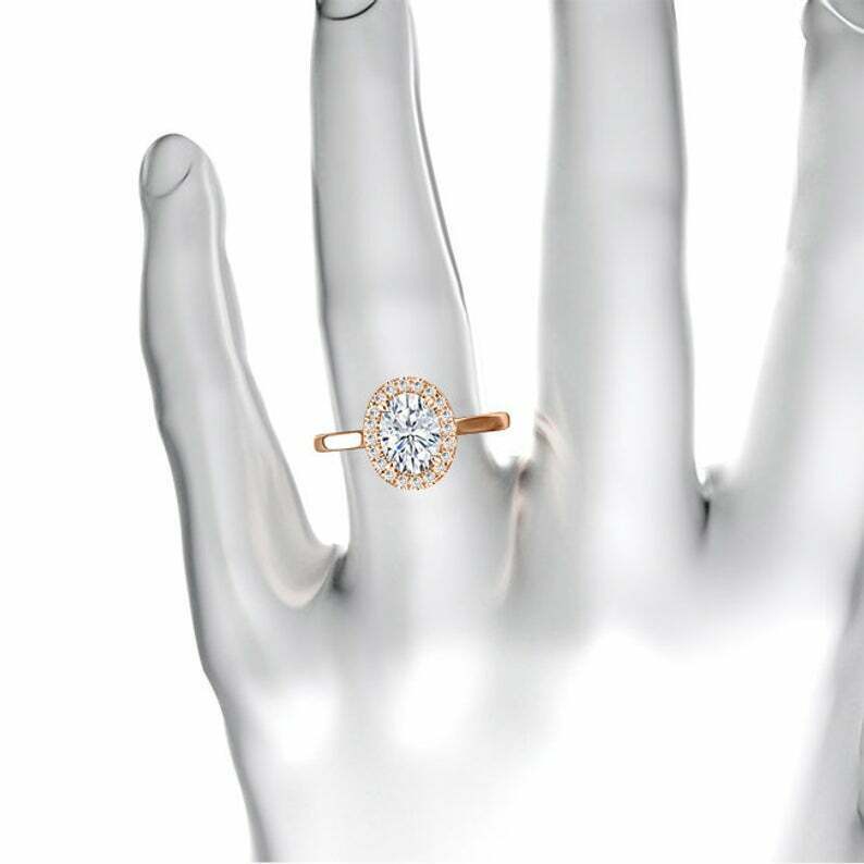 Halo Solitaire with Accents Ring 1.25ct Oval Cut Diamond 14k Rose Gold Finish