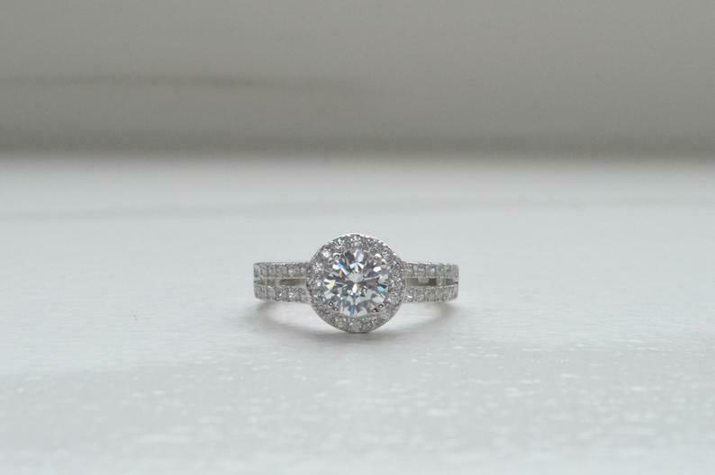 Halo Split Shank Solitaire Engagement Ring 2ct Round Cut Diamond 14k White Gold Over