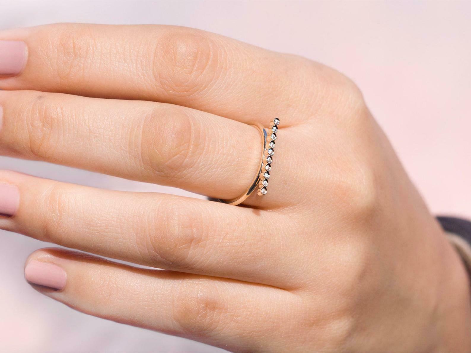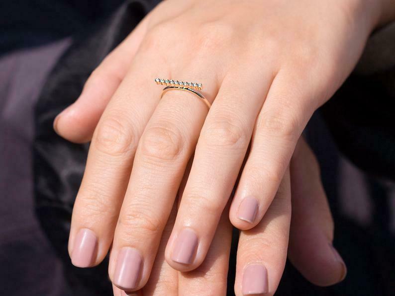 Horizontal Bar Minimalist Ring 0.5ct Round Cut Diamond 14k Yellow Gold Finish