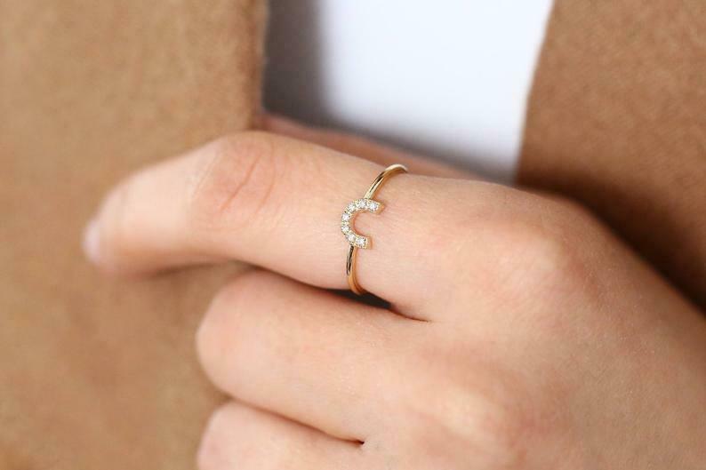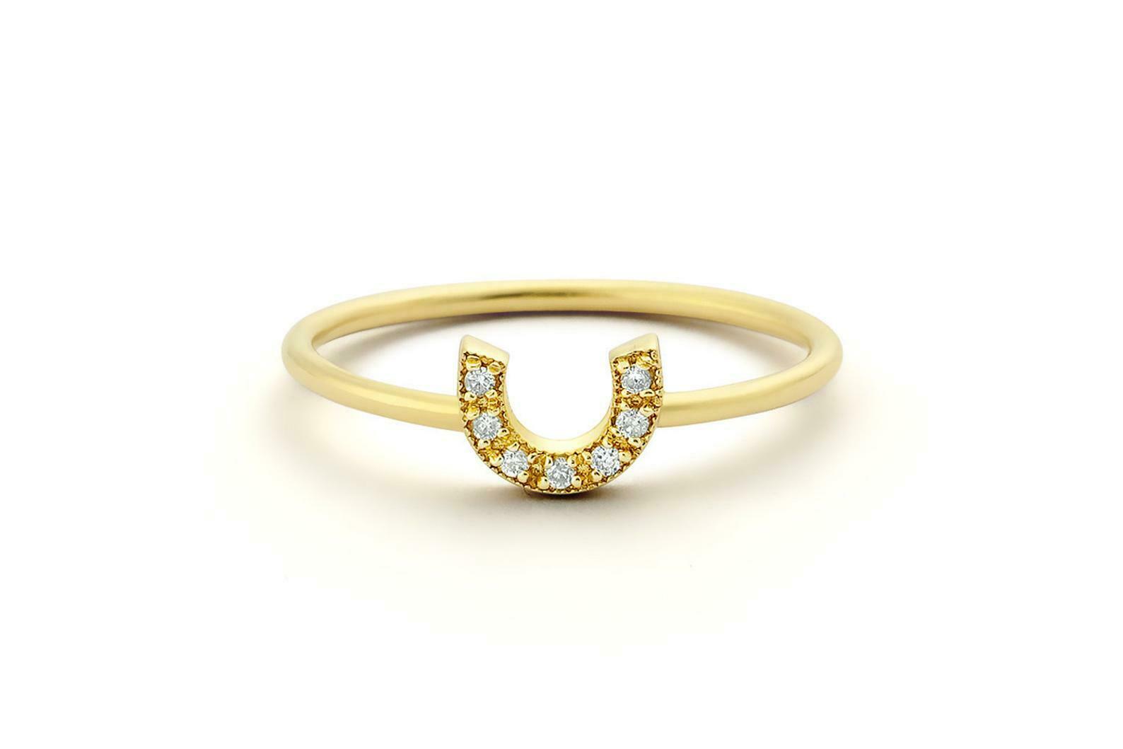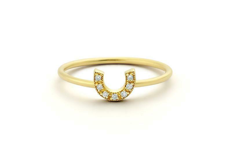 Horseshoe Engagement Ring 0.5ct Round Cut VVS1D Diamond 14k Yellow Gold Finish