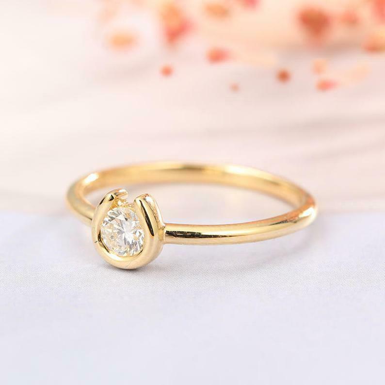 Horseshoe Solitaire Engagement Ring 1ct Round Cut Diamond 14k Yellow Gold Finish