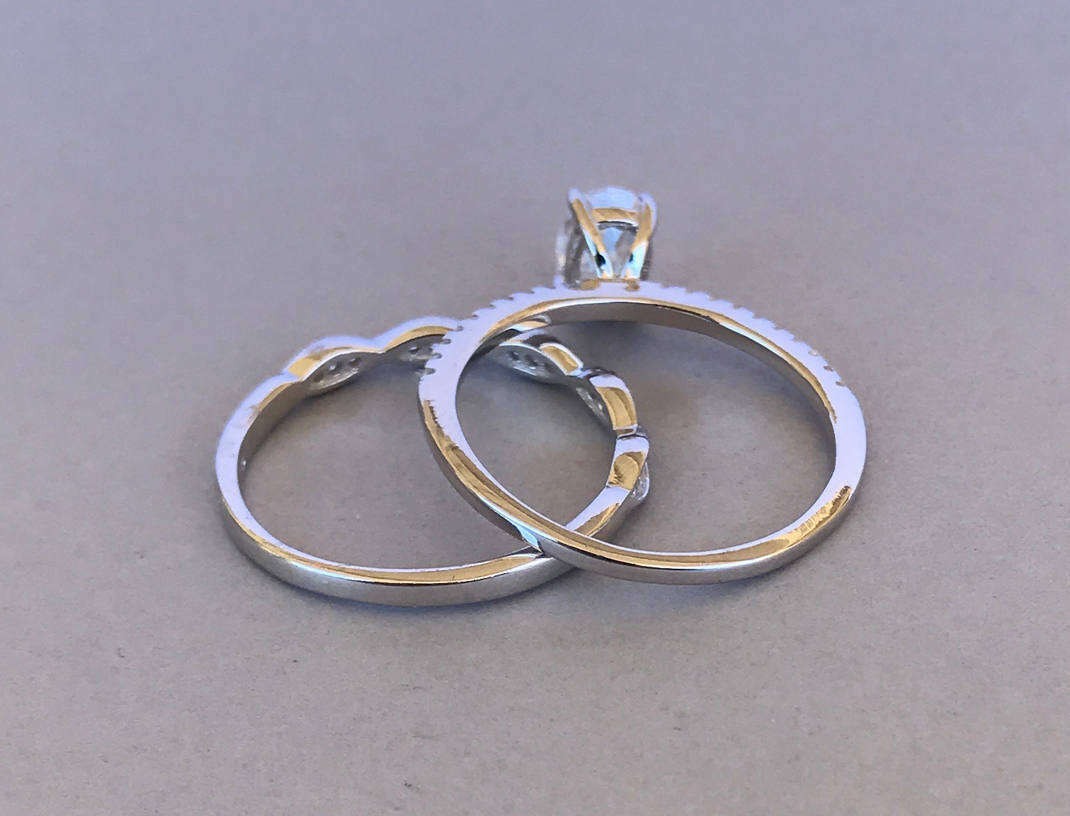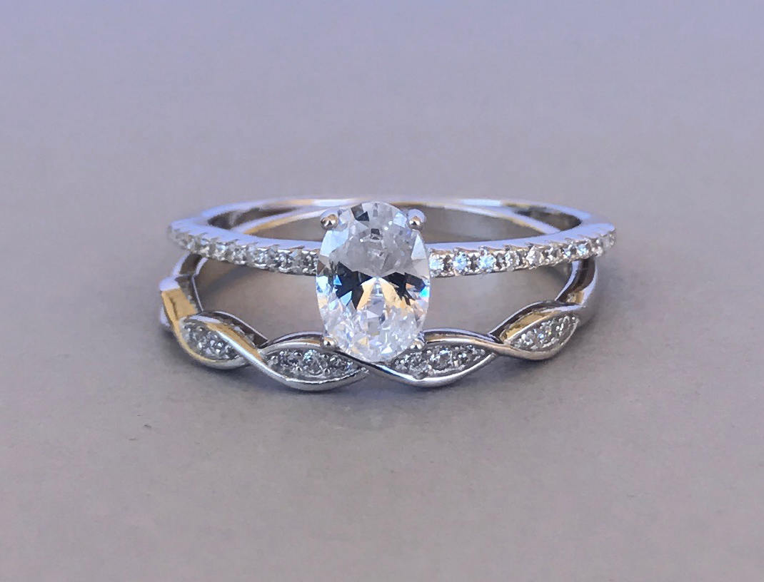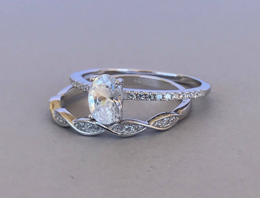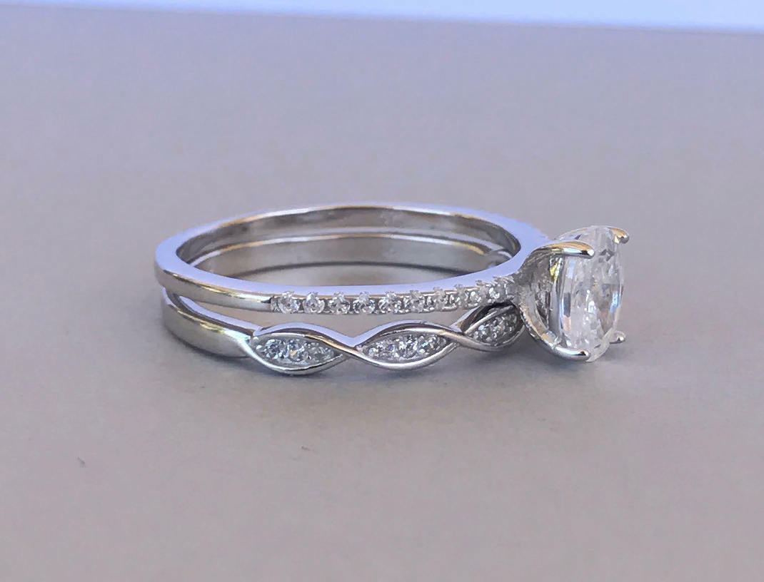 Infinity Bridal Set Engagement Ring 2ct Oval Cut Diamond 14k White Gold Finish