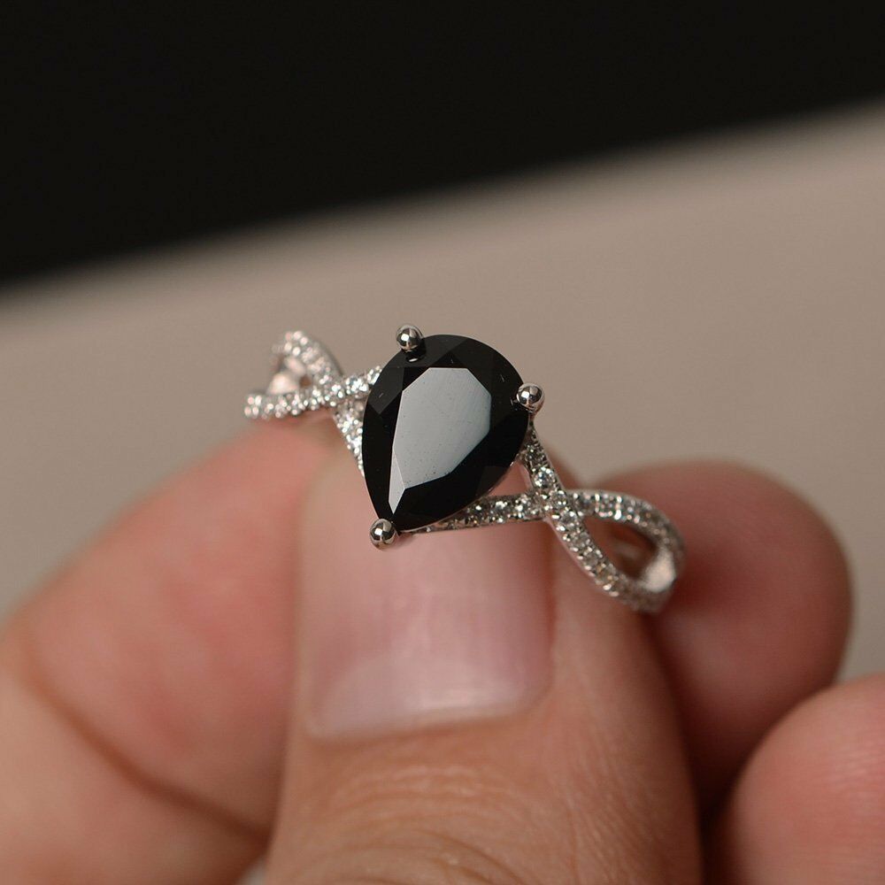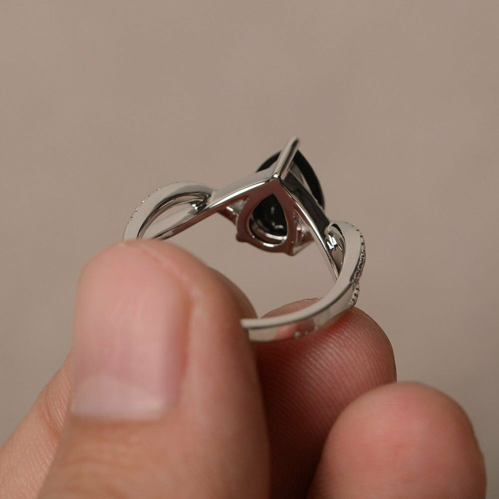 Infinity Solitaire Engagement Ring 1ct Pear Cut Black Diamond 14k WhiteGold Over
