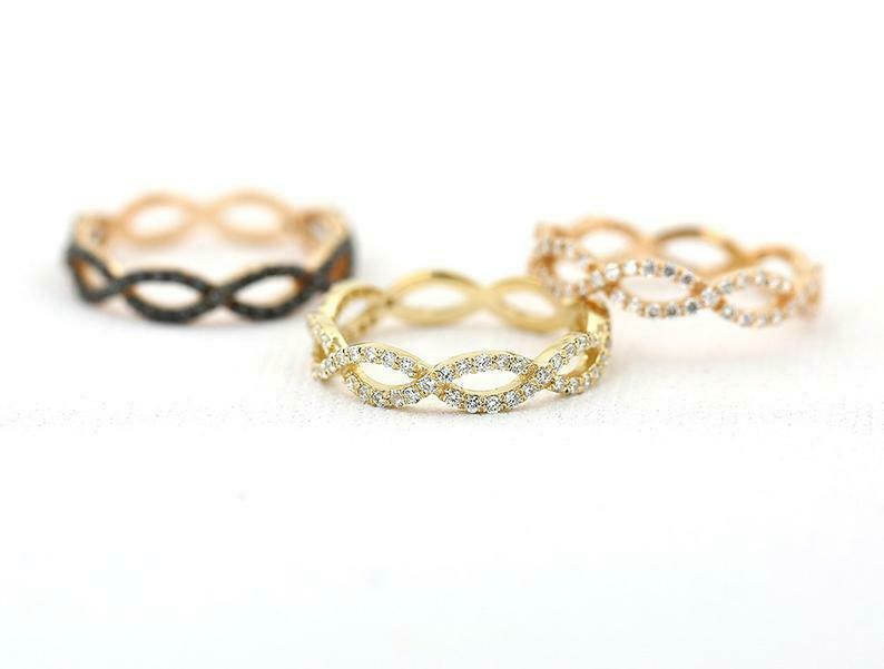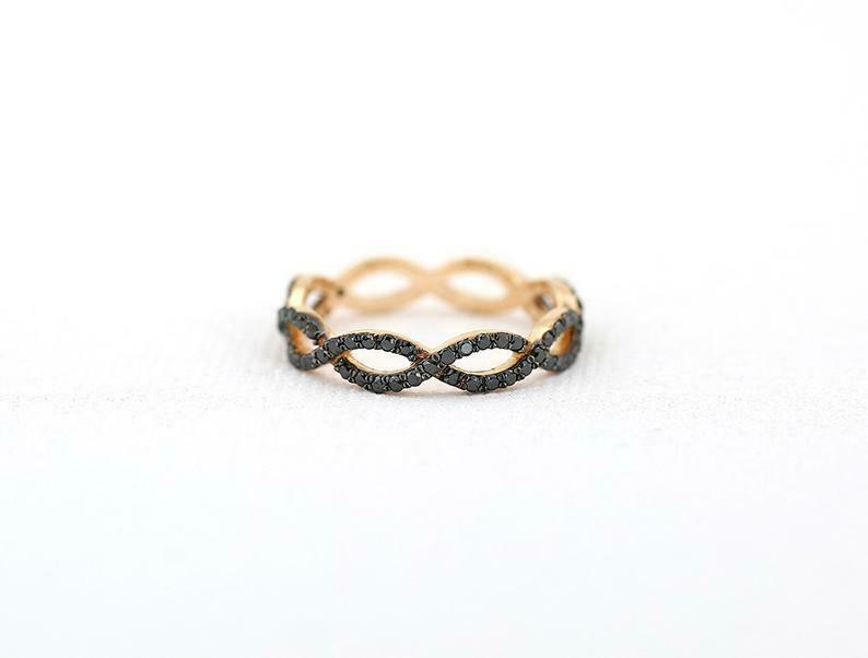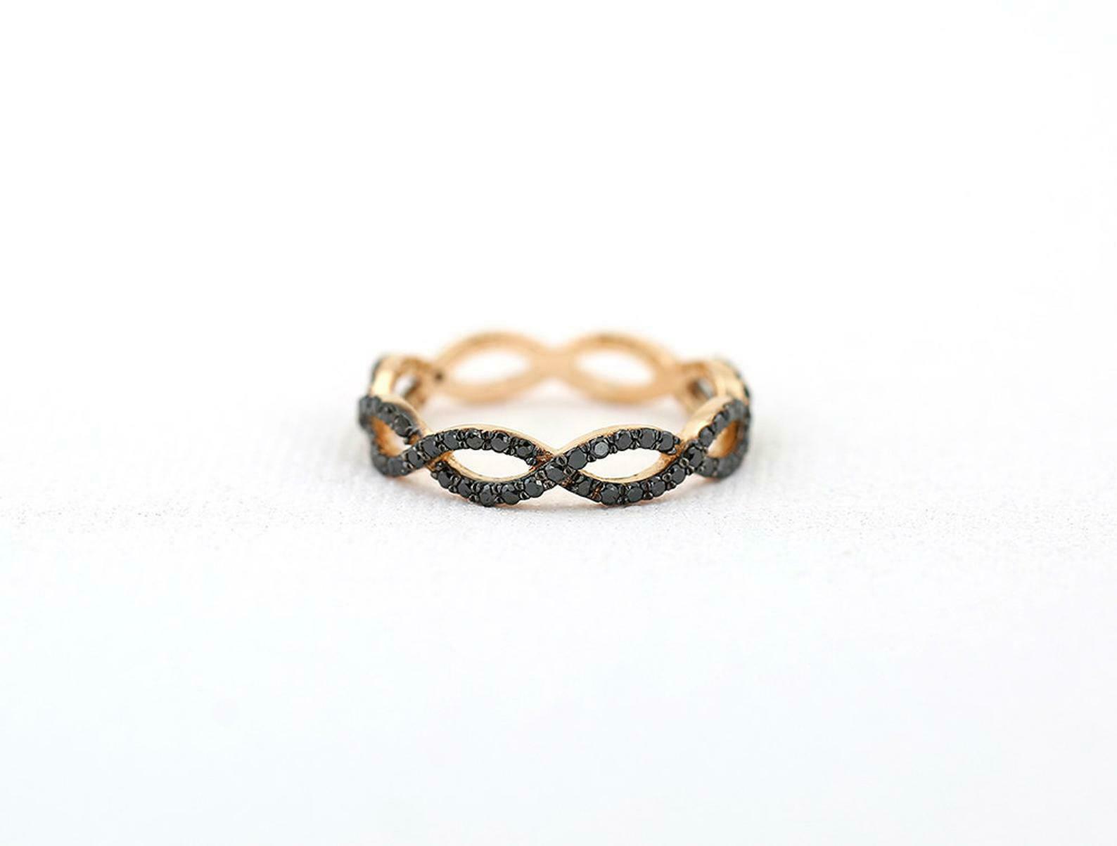 Infinity Twist Eternity Wedding Band 1ct Round Cut Black Diamond 14k Rose Gold Finish