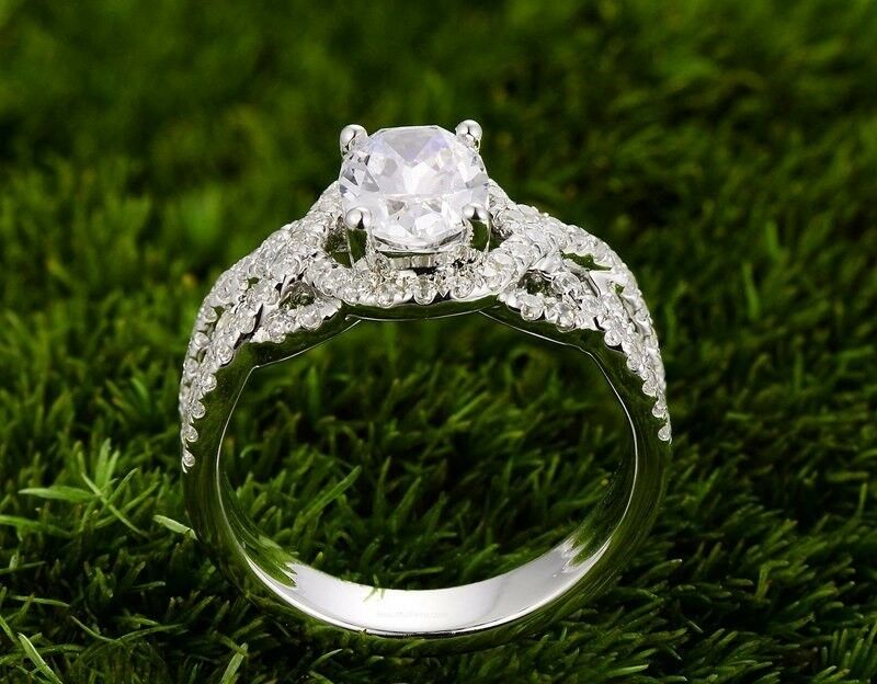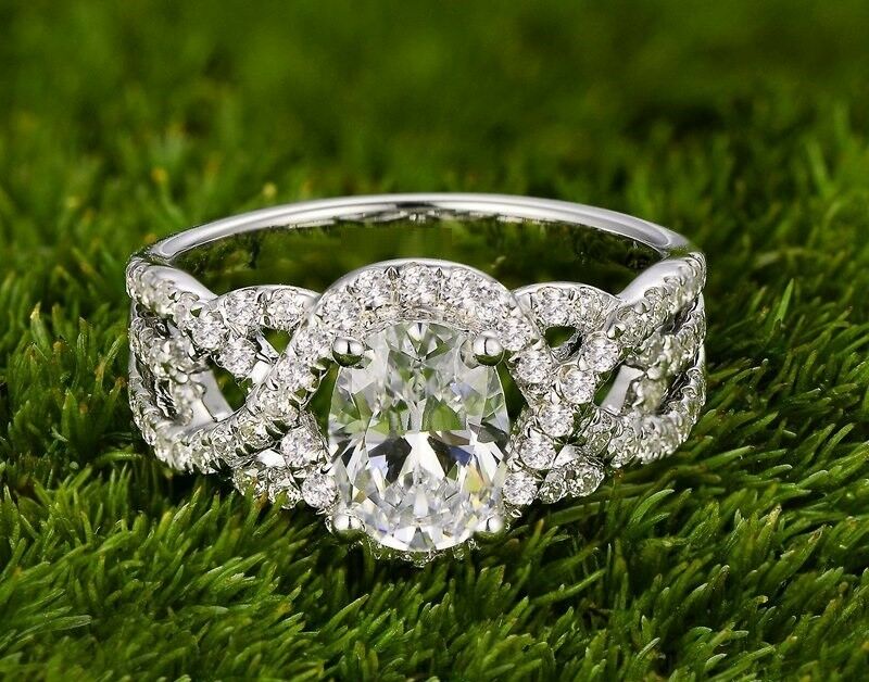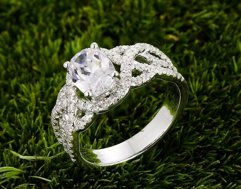 Infinity Unique Engagement Ring 2.5ct Oval Cut Diamond 14k White Gold Finish