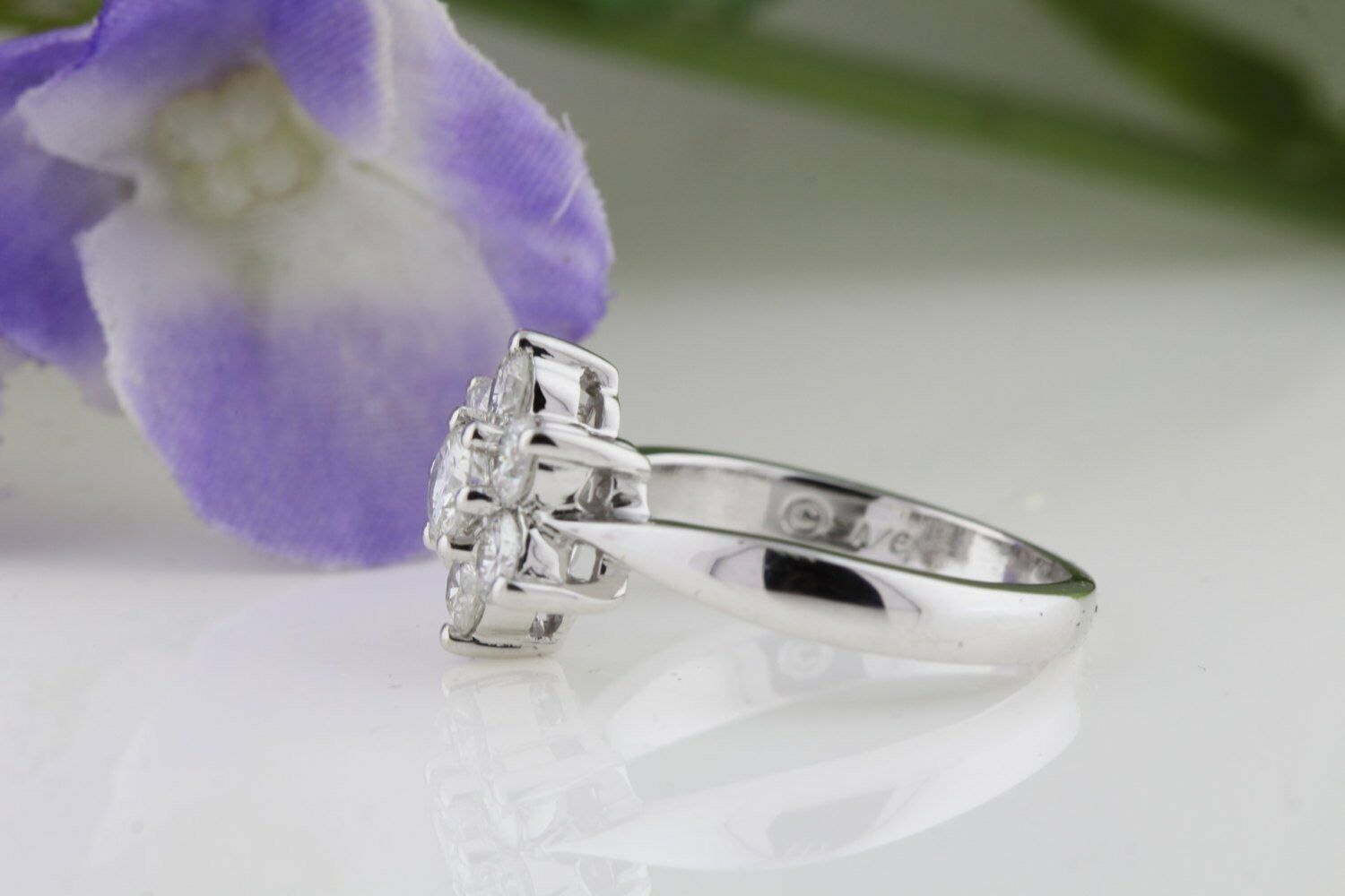 Large Cluster Flower Engagement Ring 1ct Round Cut Diamond 14k White Gold Finish