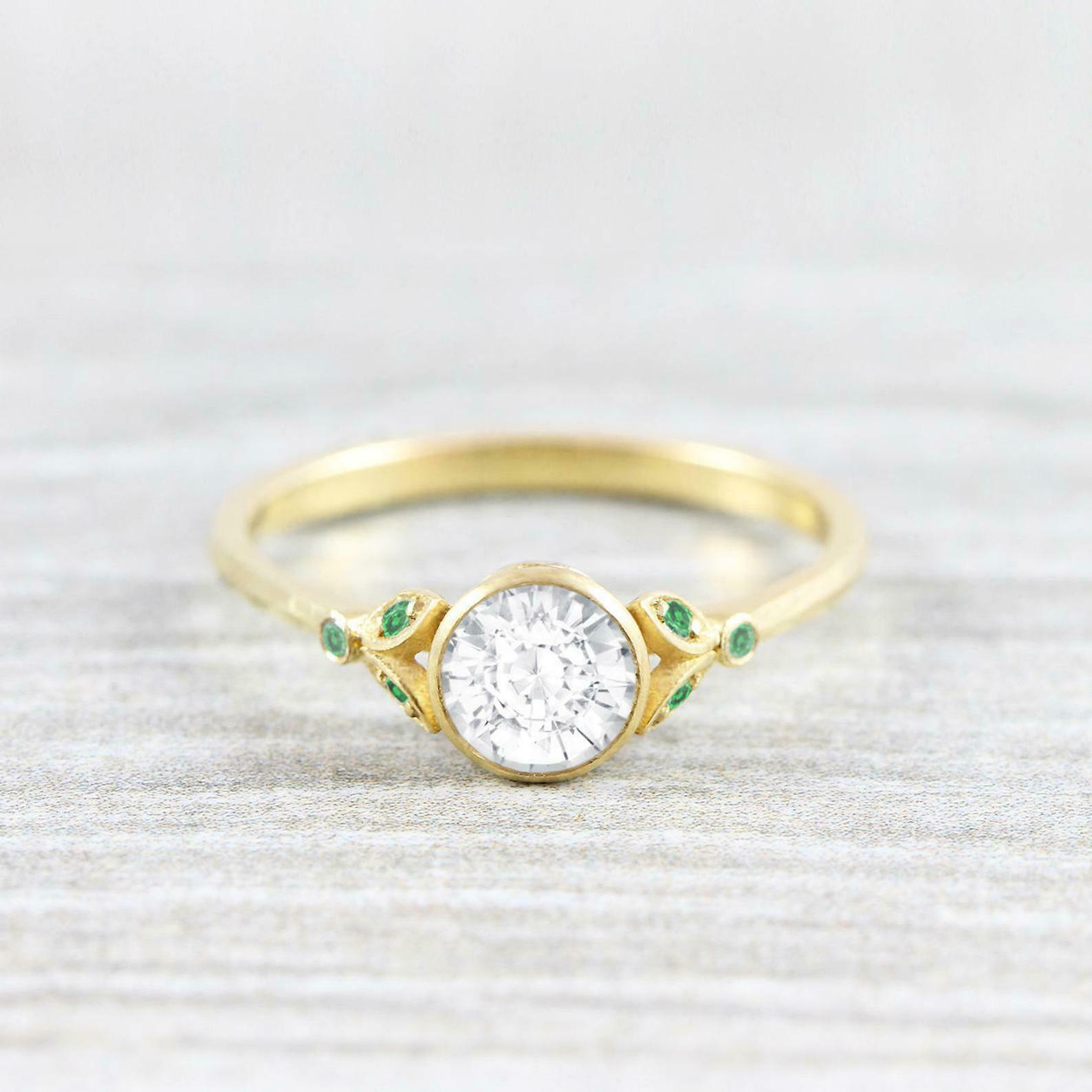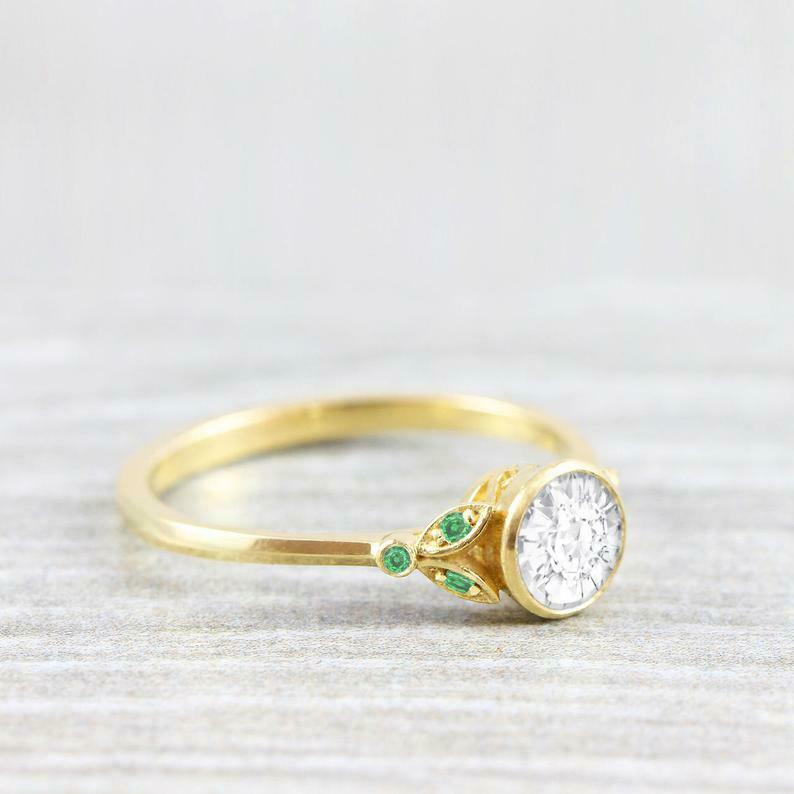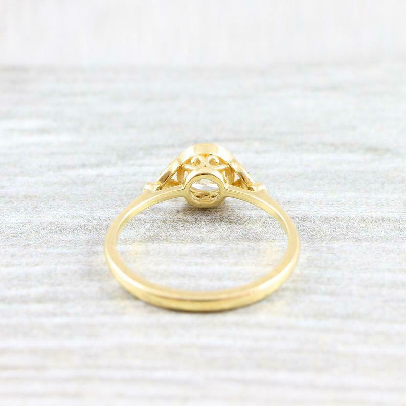 Leaf Accents Design Engagement Ring 1ct Round Cut Diamond 14k Yellow Gold Finish