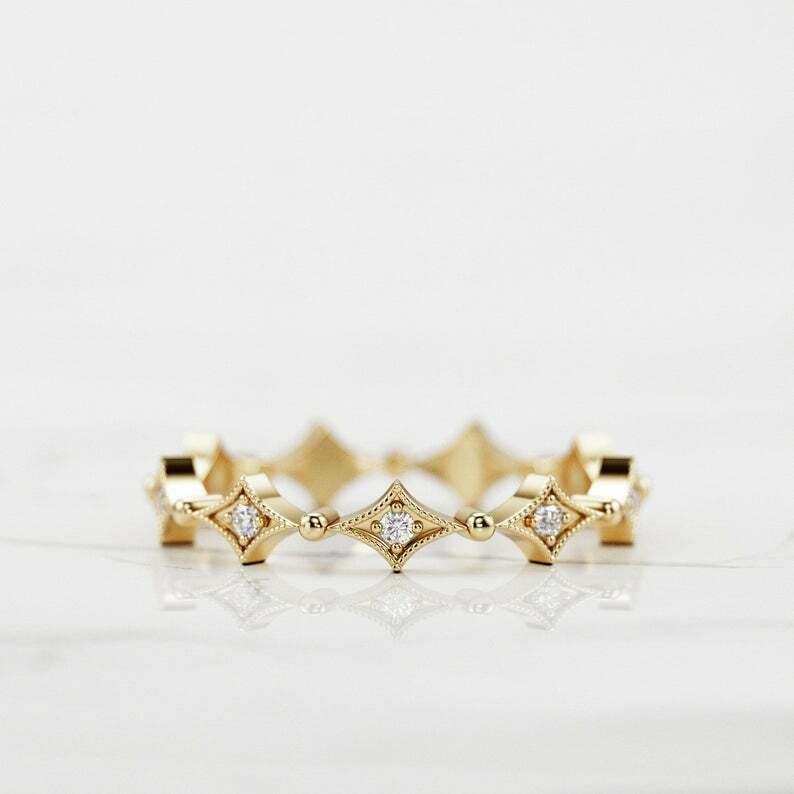 Milgrain Full Eternity Wedding Band 0.7ct Round Cut Diamond 10k Yellow Gold Over