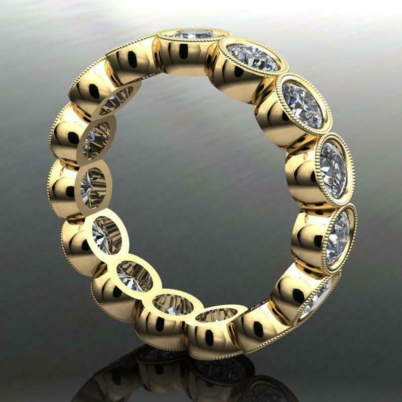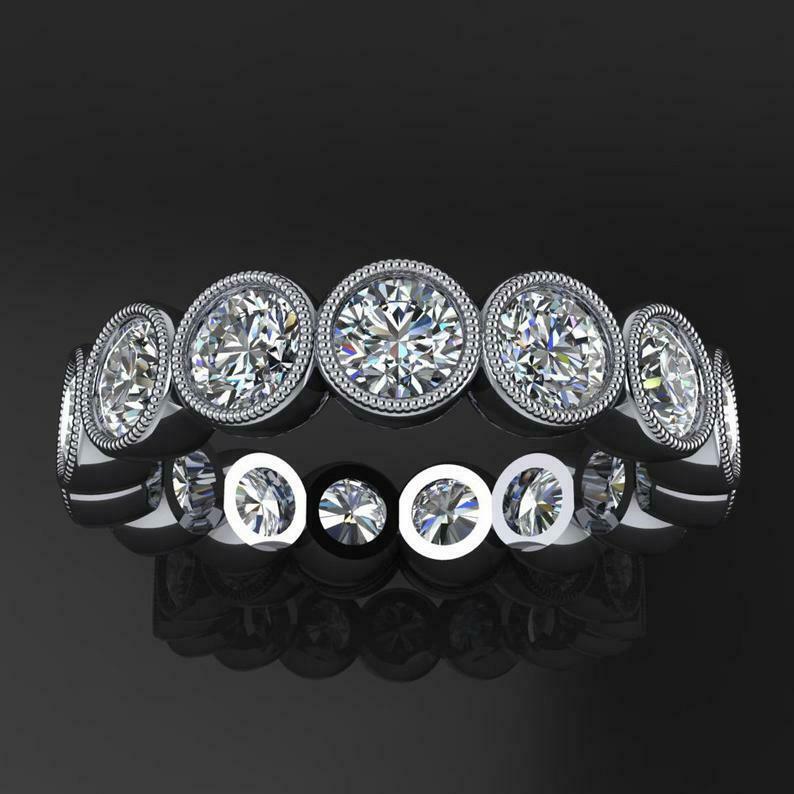Milgrain Full Eternity Wedding Band 2.5ct Round Cut Diamond 14k White Gold Finish